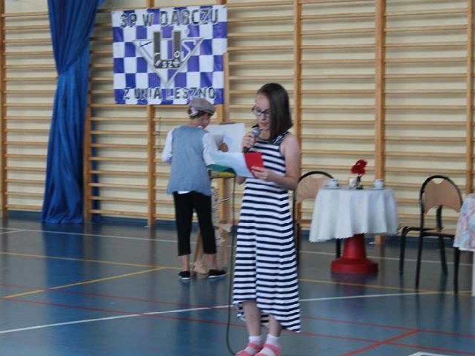 W piękny i słoneczny dzień 20 czerwca, Szkoła Podstawowa w Dąbczu organizowała kilkugodzinny festyn rodzinny. Motywem przewodnim tegorocznego festynu były kraje europejskie. Każda klasa (a jest ich dziesięć) przygotowała, krótką część artystyczną przybliżającą zwyczaje i kulturę danego kraju, natomiast na boisku szkolnym powstały stoiska z pysznymi przekąskami tradycyjnymi dla danych krajów. Mogliśmy zatem spotkać, królową Anglii w asyście Big Bena, Leonarda da Vinci malującego Mona Lisę, czy też podziwiać kankana lub grecką zorbę. Festyn pokazał również, jak ważna jest współpraca pomiędzy nauczycielami, uczniami oraz rodzicami, a także jak wspaniałe efekty tej współpracy można uzyskać.