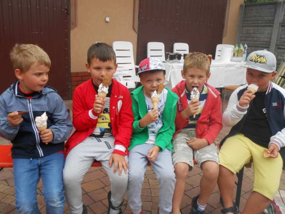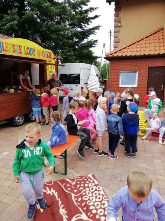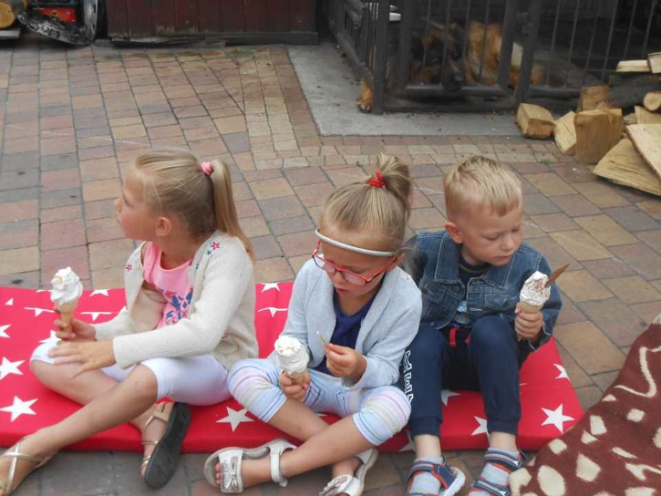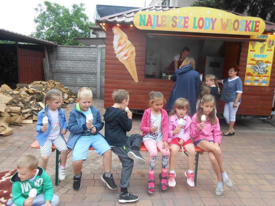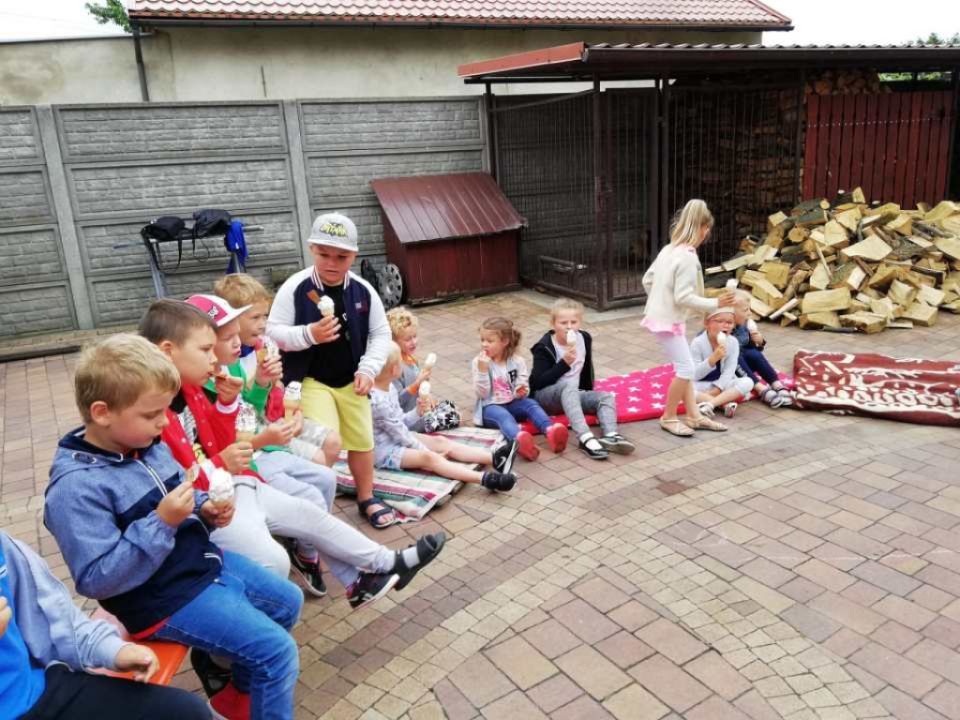 Na rozpoczęcie lata przedszkolacy z Kłody zostali zaproszeni  na piknik do  Rodziców Tomka p. Dorotę i Przemysława Szczepaniaków . Było tak jak przystało na zbliżające się wakacje-piosenki i dużo zabawy świetnej na świeżym powietrzu.Nie zabrakło lodów; to prawdziwie letni deser, który uwielbiają wszystkie dzieci. Choć kojarzą  się głównie z latem to  można je jeść przez cały rok. Dzieci miały również okazję przekonać się jak robi się domowe lody- były pyszne! Zostaliśmy również poczęstowani goframi. Z daleka unosił się w całej okolicy zapach pieczonego ciasta, a smak…. Pyszności !!! palce lizać. Dziękujemy za zaproszenie.