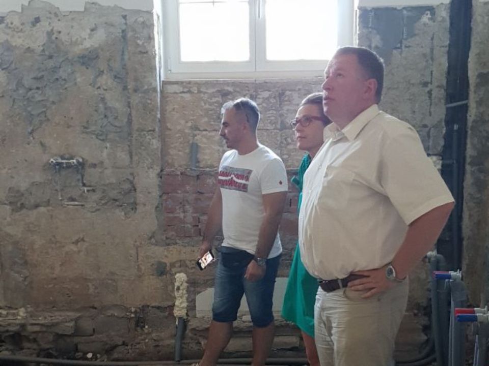 Starosta leszczyński Jarosław Wawrzyniak wizytował postęp prac przy przebudowie SOSW Rydzyna.