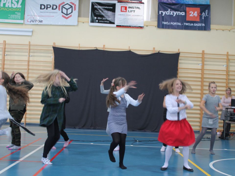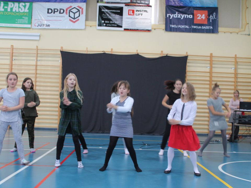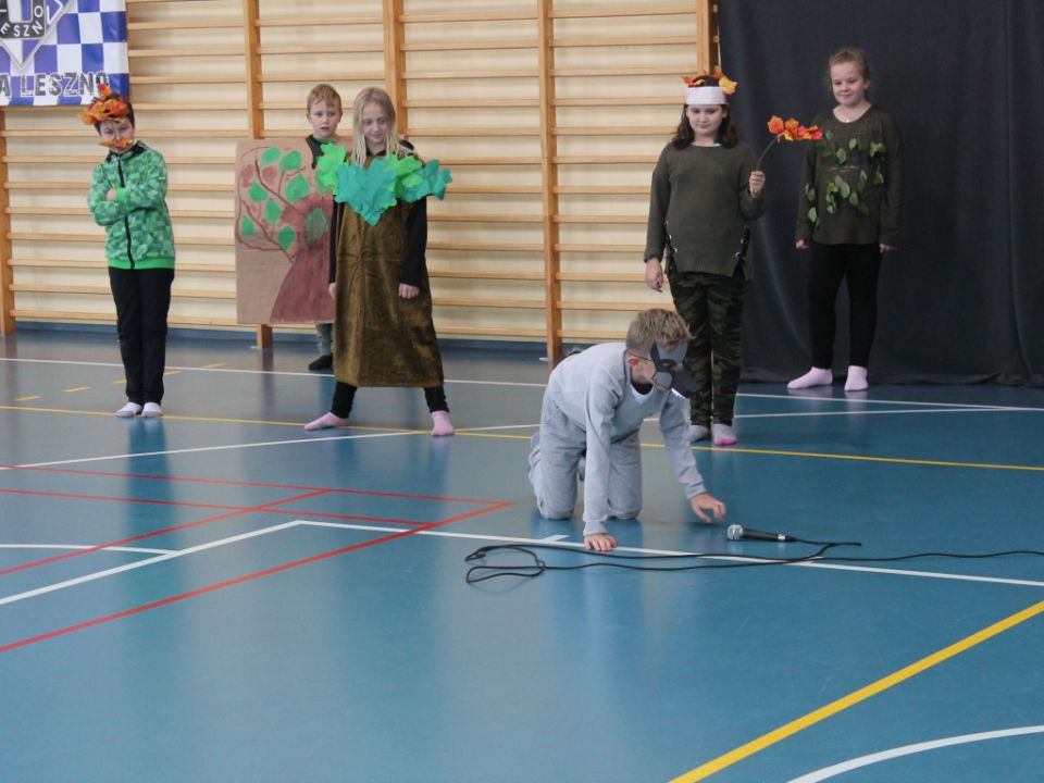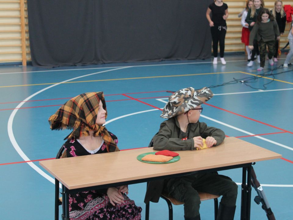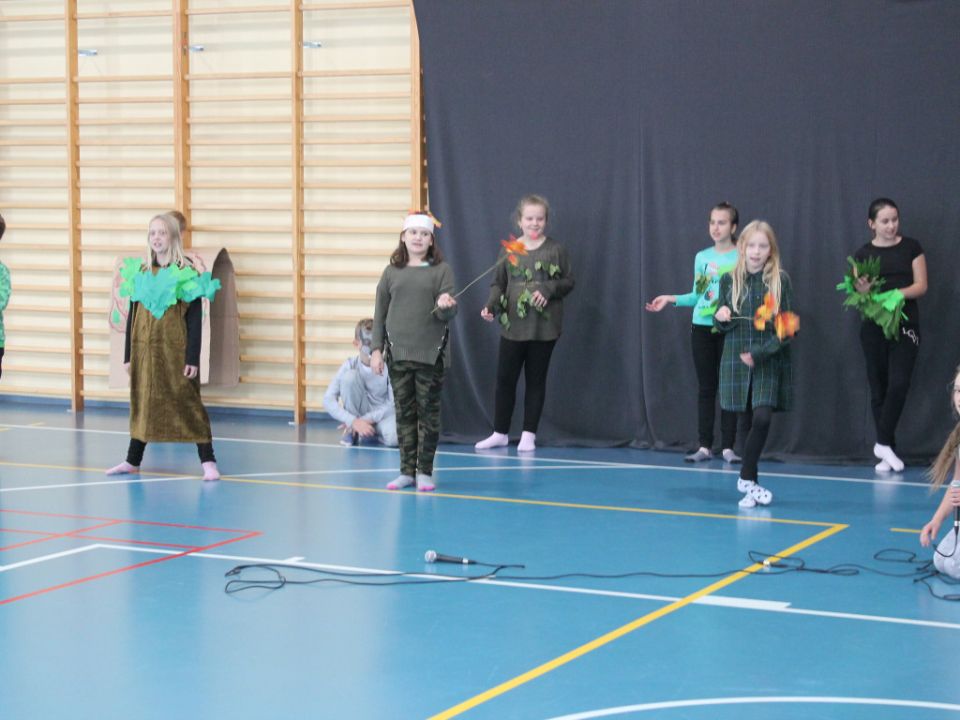 Przedstawienie odbyło się na czwartej godzinie lekcyjnej. Czwartoklasiści wcześniej przygotowali staranne zaproszenia dla uczniów klas I-IV wraz z nauczycielami. Gdy goście pojawili się na sali gimnastycznej, rozpoczął się występ. Cała klasa zaangażowała się, a odtwórcy głównych ról: Czerwony Kapturek (Julia Matysiak) i Wilk (Maciej Kajzer) poradzili sobie bez zarzutu.