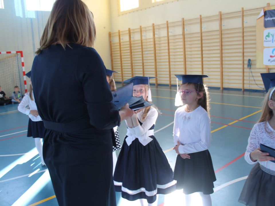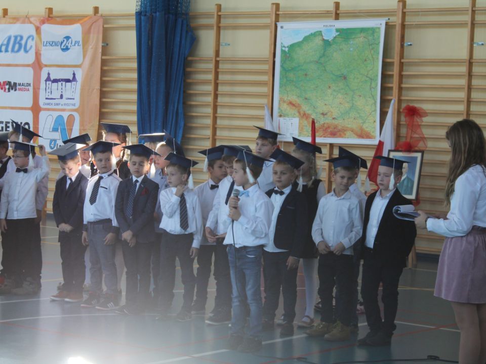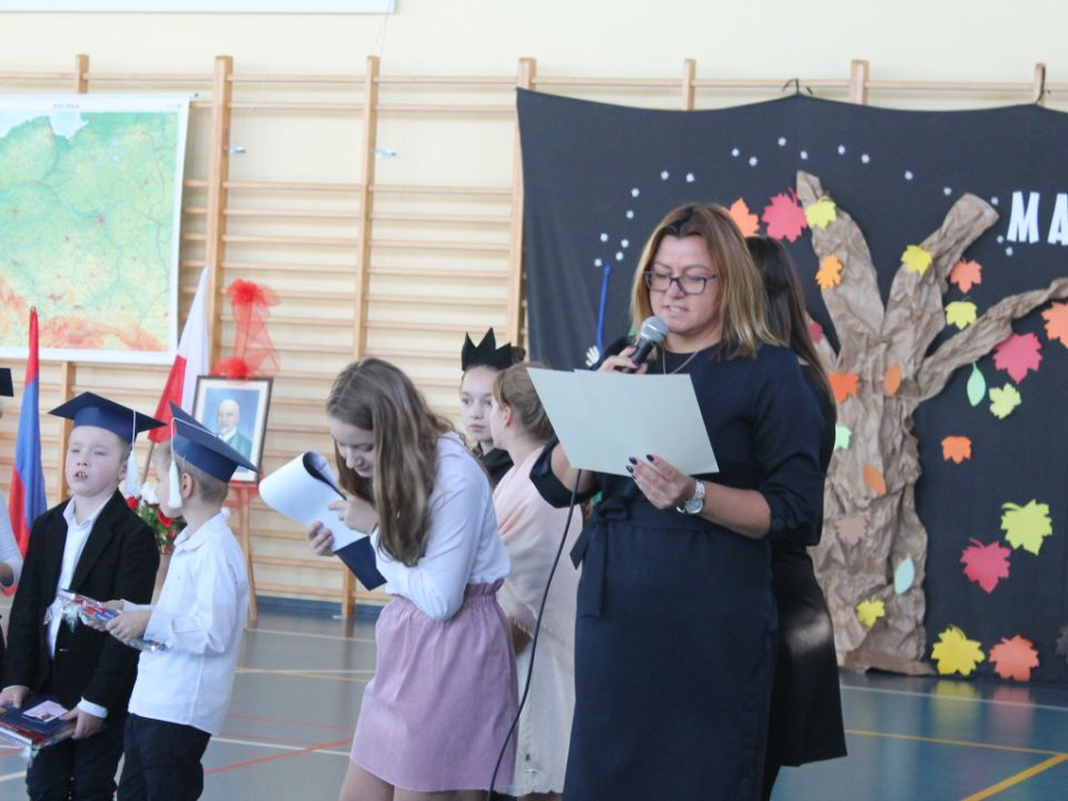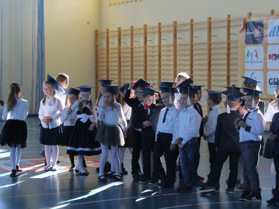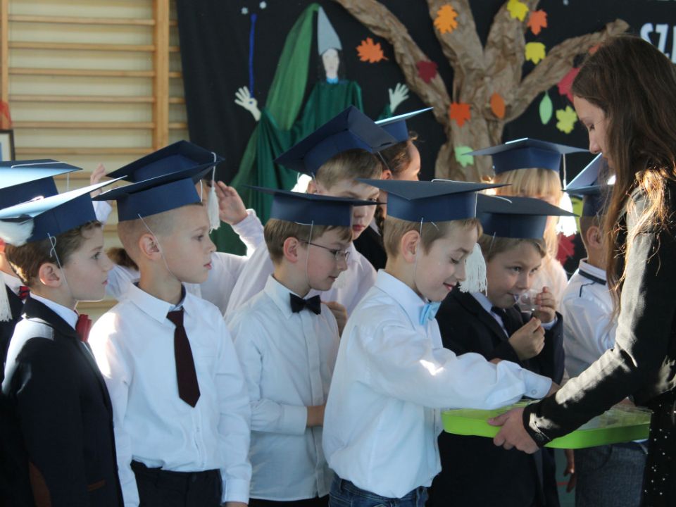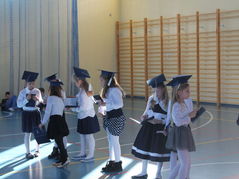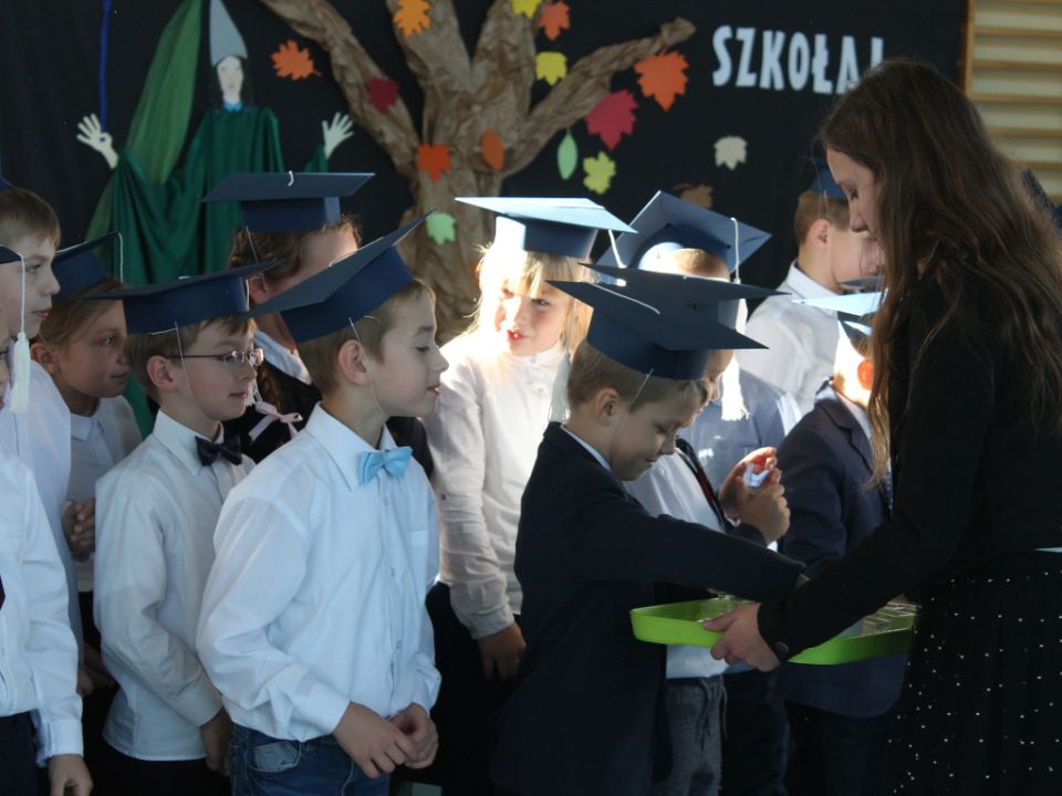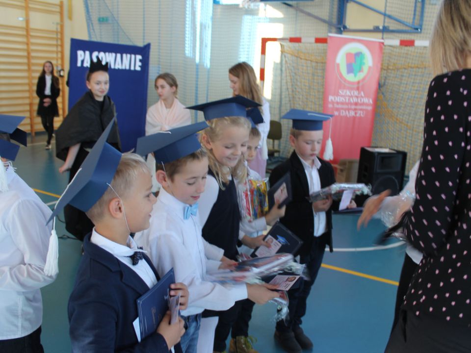 Po programie artystycznym Dyrektor Szkoły Wojciech Jędrzejczak uroczyście pasował uczniów. Dzieci otrzymały również pamiątkowe dyplomy. Na zakończenie Burmistrz Kornel Malcherek podarował dzieciom słodkie upominki.