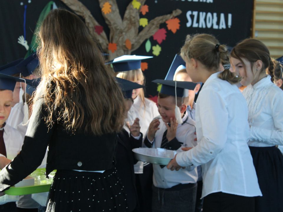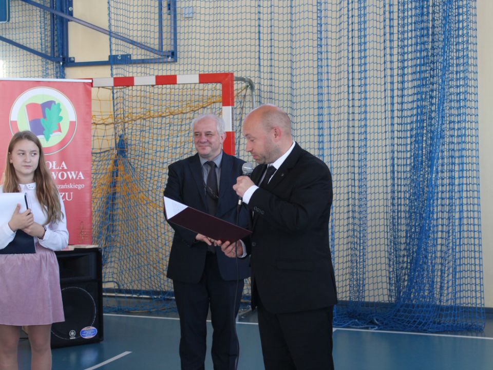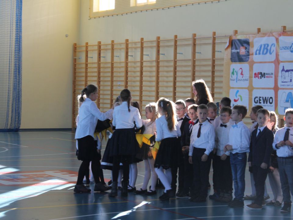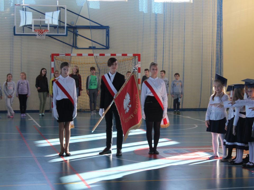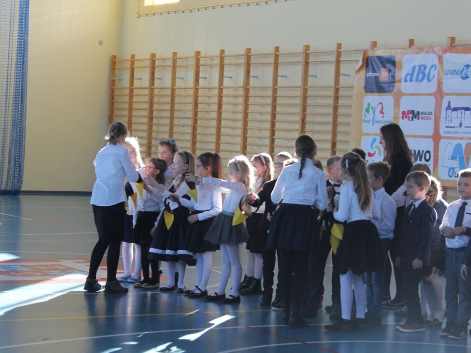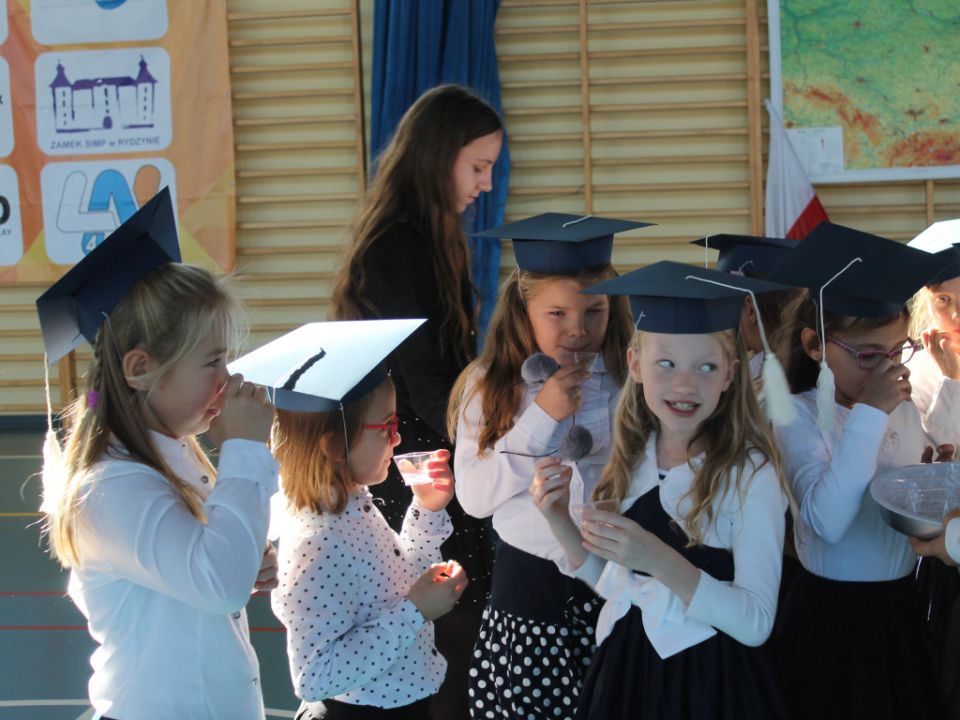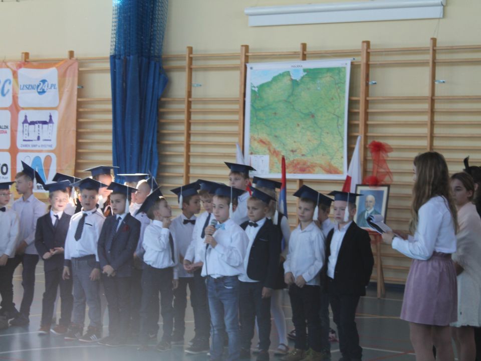 Po programie artystycznym Dyrektor Szkoły Wojciech Jędrzejczak uroczyście pasował uczniów. Dzieci otrzymały również pamiątkowe dyplomy. Na zakończenie Burmistrz Kornel Malcherek podarował dzieciom słodkie upominki.