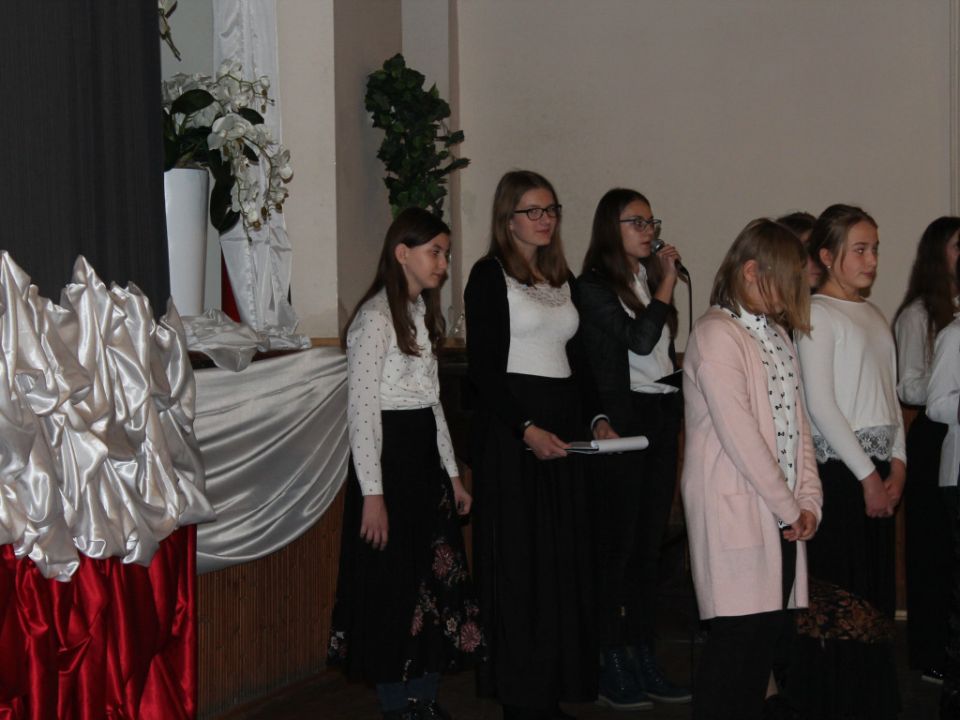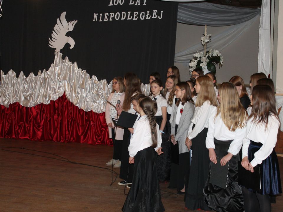 Ponadto dzieci wyrecytowały kilka wierszy, przedstawiły informacje historyczne oraz zatańczyły poloneza. „Miło było patrzeć na ludzi, którzy śpiewali razem z nami. Z jednej strony czułam się niepewnie, z drugiej miałam satysfakcję, że uczestniczę w czymś ważnym” – zdradziła jedna z uczennic, Zosia Hasińska.