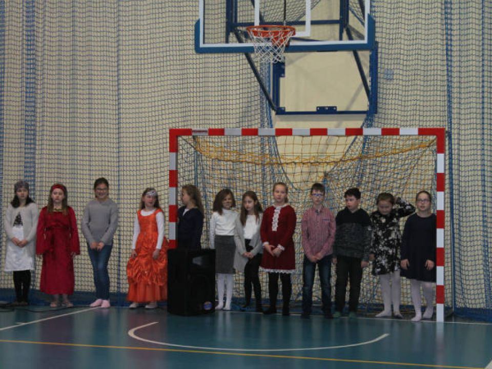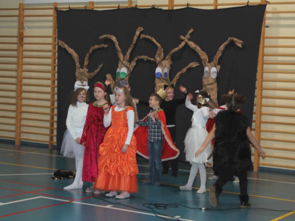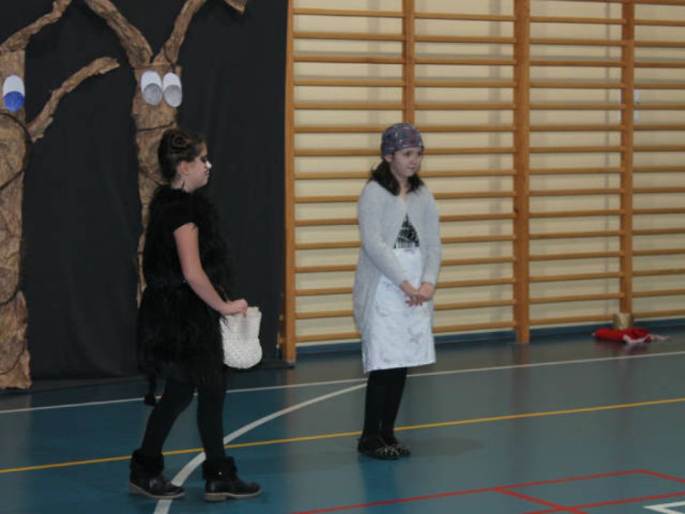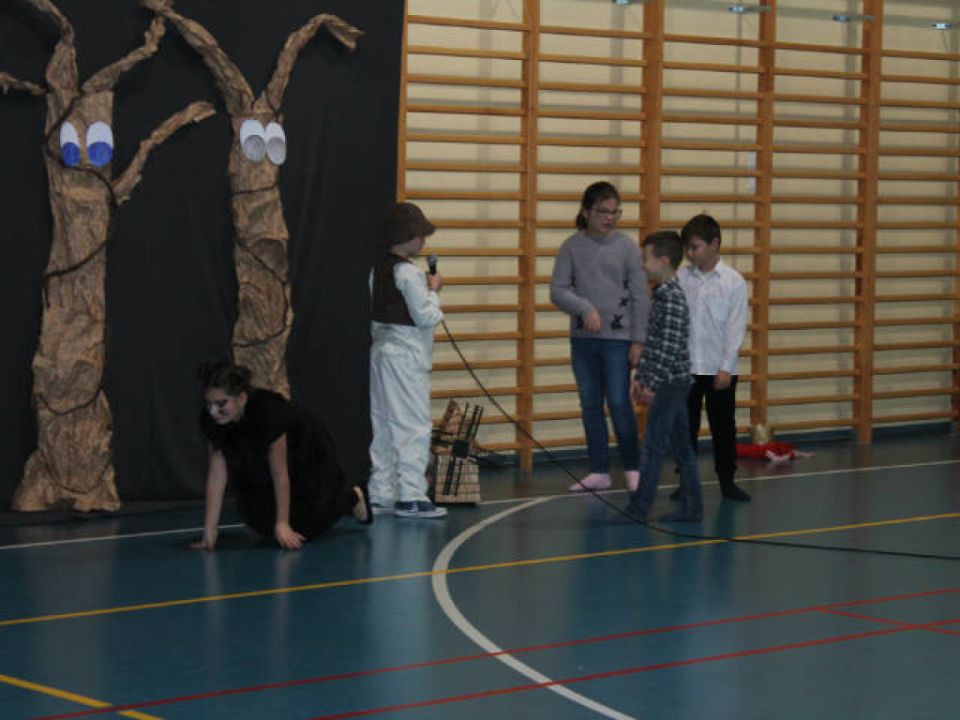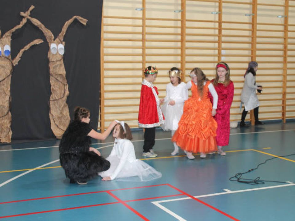 Występ odbył się na pierwszej lekcji we wtorek. Wcześniej została na niego zaproszona Dyrekcja oraz uczniowie klas I-IV wraz z wychowawcami. Gdy goście pojawili się na sali gimnastycznej, rozpoczęło się przedstawienie. Były ciekawe dialogi, dużo akcji oraz ładne piosenki. Młodsi koledzy i koleżanki w ciszy oglądali występ.