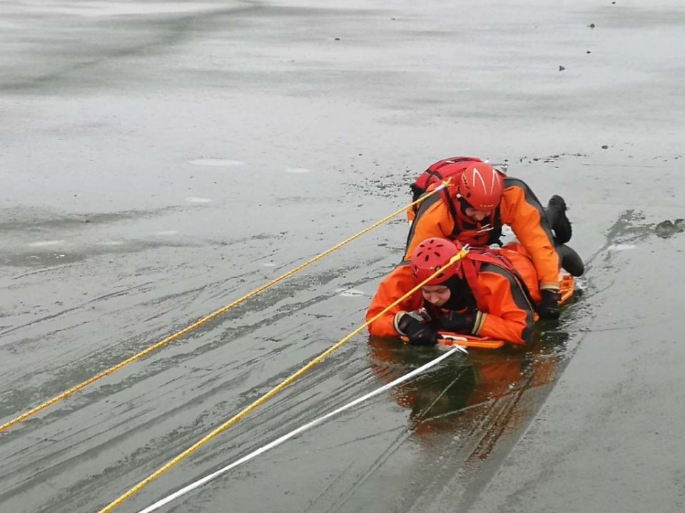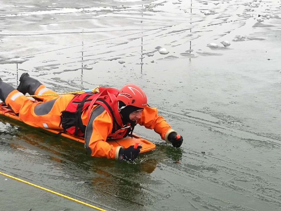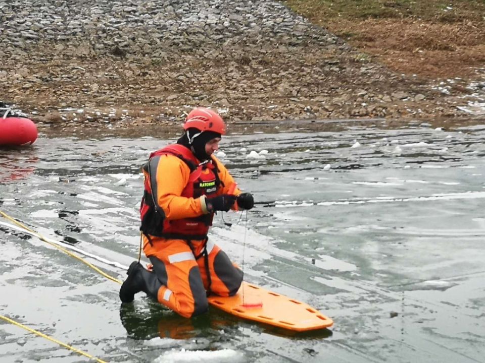 Ochotnicy zapoznali się z możliwymi scenariuszami. W trakcie przeprowadzono dwa sposoby podjęcia poszkodowanego. Pierwszym z nich jest deska ratownicza, a kolejnym – sanie lodowe.
