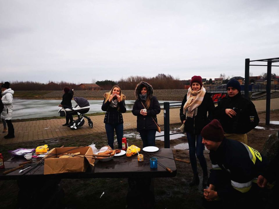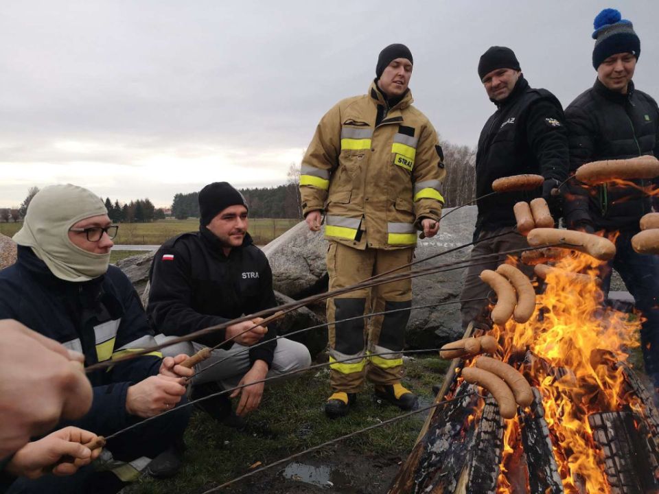 Po ćwiczeniach przy ognisku wraz z rodzinami upiekli kiełbaski.