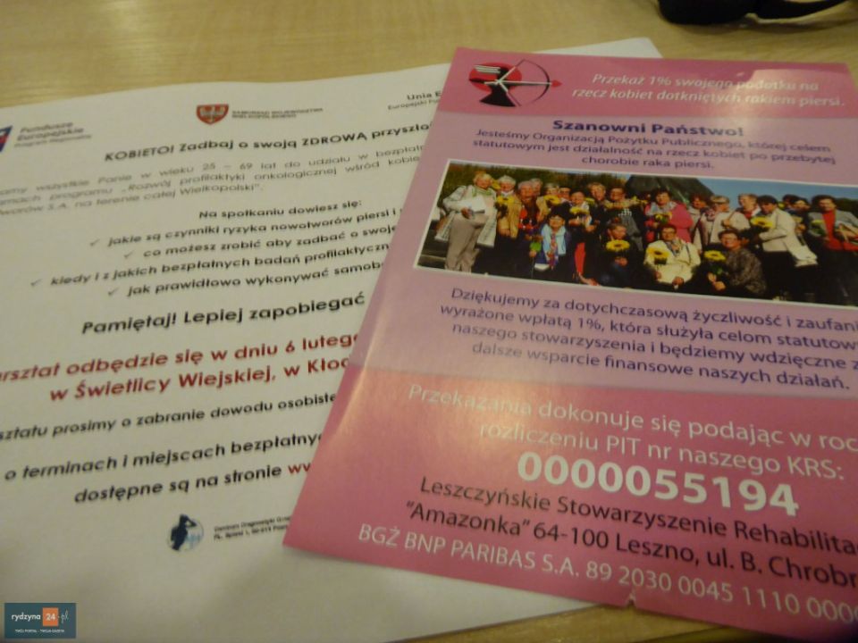 6.02. w świetlicy wiejskiej odbyły się bezpłatne warsztaty dotyczące profilaktyki onkologicznej: „Kobieto! Zadbaj o swoją ZDROWĄ przyszłość!” Zorganizowały je Ośrodek Profilaktyki i Epidemiologii Nowotworów S.A. i Leszczyńskie Stowarzyszenie „Amazonka”.
