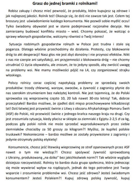 Akcja miała na celu uświadomienie konsumentów o aktualnych problemach w rolnictwie. Wydarzeni cieszyło się bardzo dużym powodzeniem oraz poparciem mieszkańców Leszna. Więcej informacji na agrounia.pl