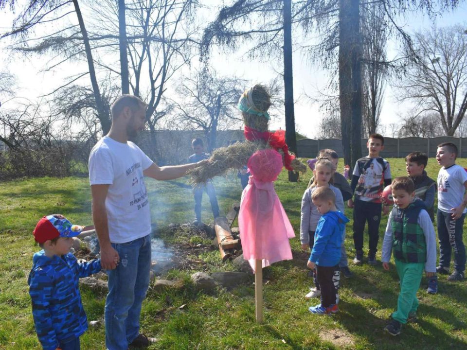 Oprócz „topienia Marzanny”, dzieci spędziły czas na zabawie, a na wszystkich uczestników wydarzenia czekały kiełbaski z ogniska.