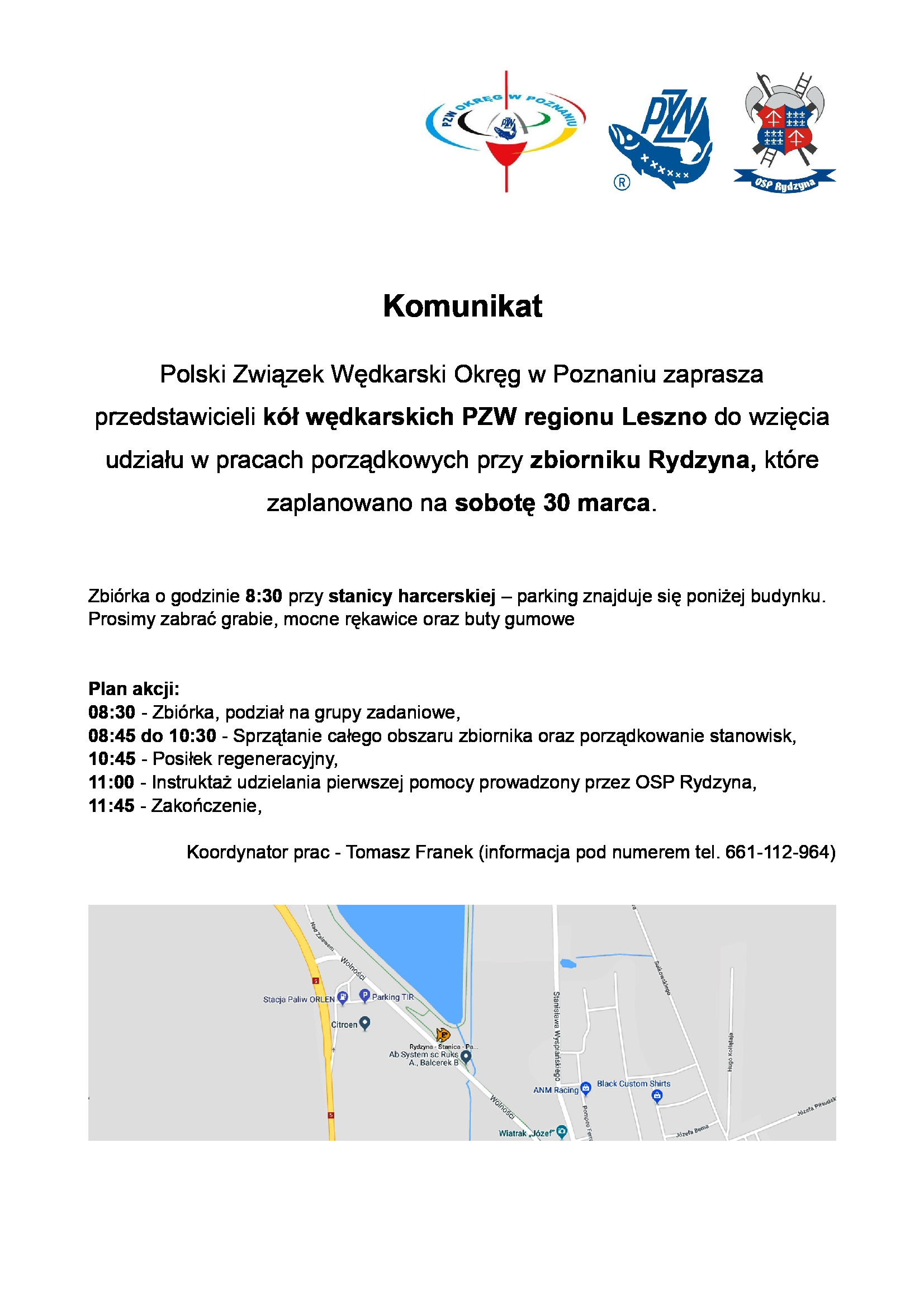 udziału w pracach porządkowych przy zbiorniku Rydzyna, które
