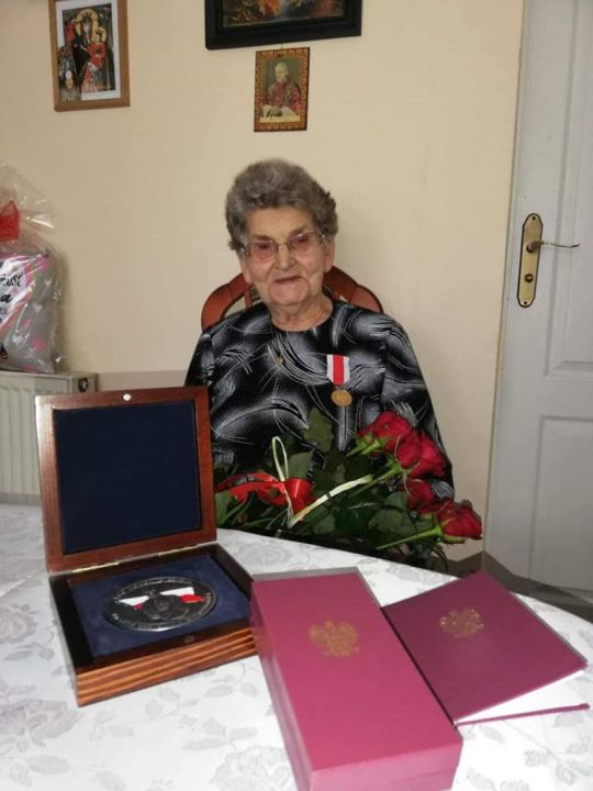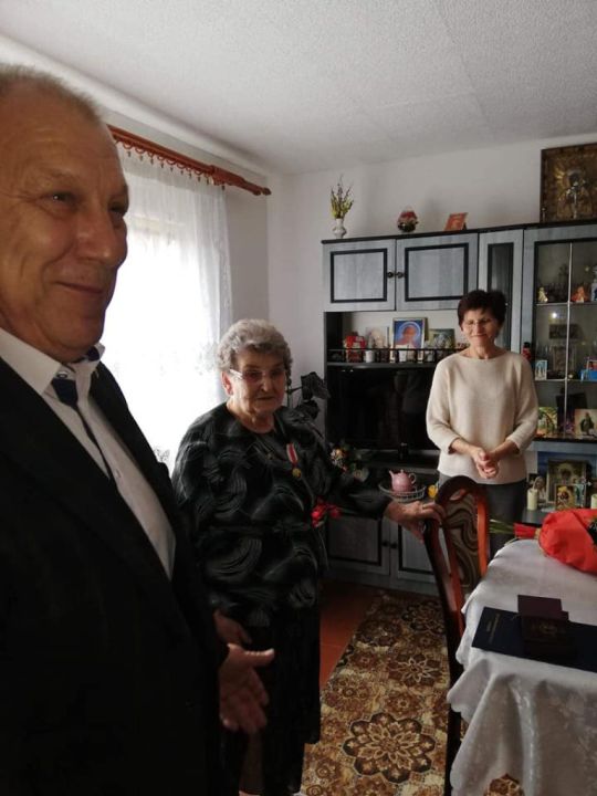 Burmistrz UMiG Rydzyny oraz Komendant WKU w Lesznie, wręczyli pani Czesławie Wojciechowskiej z Tarnowej Łąki złoty medal Zasłużony dla obronności Rzeczpospolitej Polskiej.