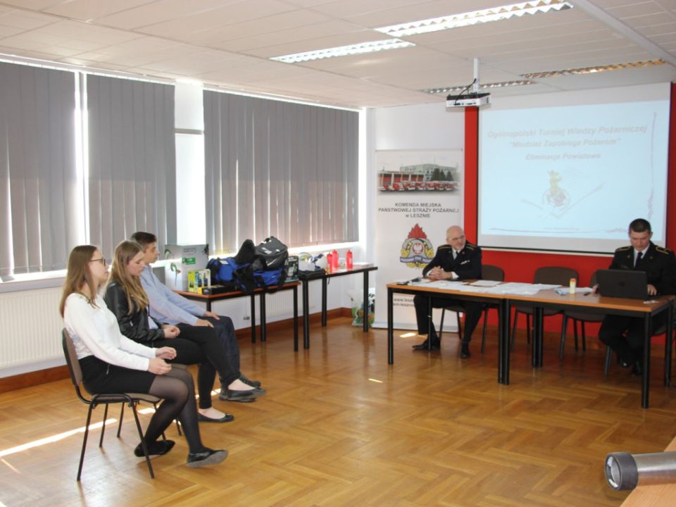8 kwietnia 2019 roku o godzinie 10.00 w siedzibie Komendy Miejskiej Państwowej Straży Pożarnej w Lesznie rozpoczęła się kolejna tura eliminacji powiatowych Ogólnopolskiego Turnieju Wiedzy Pożarniczej „Młodzież Zapobiega Pożarom”.