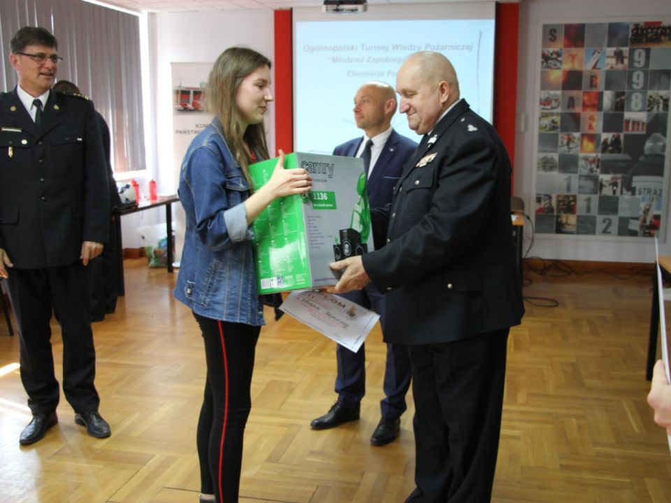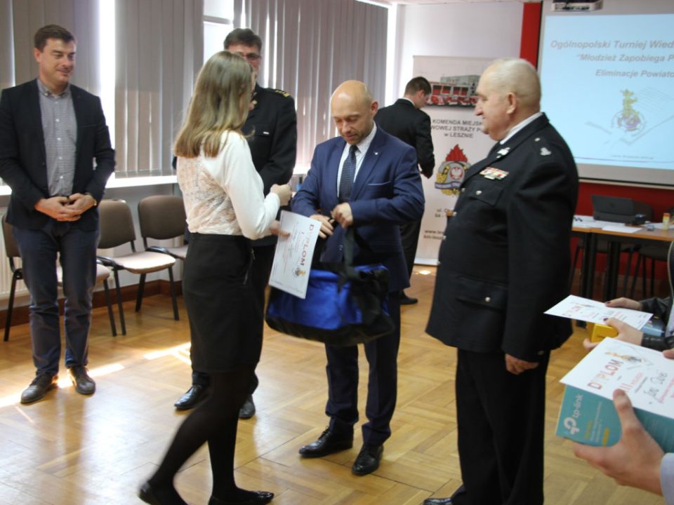Uczestnicy otrzymali dyplomy oraz nagrody rzeczowe z rąk Pana Grzegorza Rusieckiego – Wicestarostę Powiatu Leszczyńskiego, Pana Kornela Malcherka – Burmistrza Miasta i Gminy Rydzyna, st. bryg. Macieja Zdęgę – Komendanta Miejskiego PSP w Lesznie oraz dh Stanisława Wolniczaka – Prezesa ZOP ZOSP RP w Lesznie. Fundatorami tegorocznych nagród byli; Miasto Leszno, Starostwo Powiatowe w Lesznie oraz samorządy z terenu powiatu leszczyńskiego; Miasto i Gmina Rydzyna, Gmina Lipno, Gmina Krzemieniewo, Gmina Włoszakowice, Gmina Święciechowa oraz Gmina Wijewo.