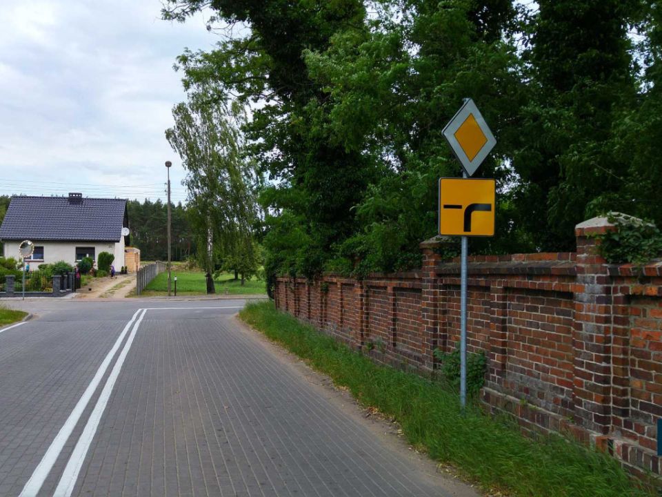 Wyjeżdżając ze strefy przemysłowej w Rydzynie w ulicę Kościuszki, jesteśmy na drodze z pierwszeństwem przejazdu, ale na jezdni jest namalowany znak poziomy P-12, który oznacza linię bezwzględnego zatrzymania – stop.