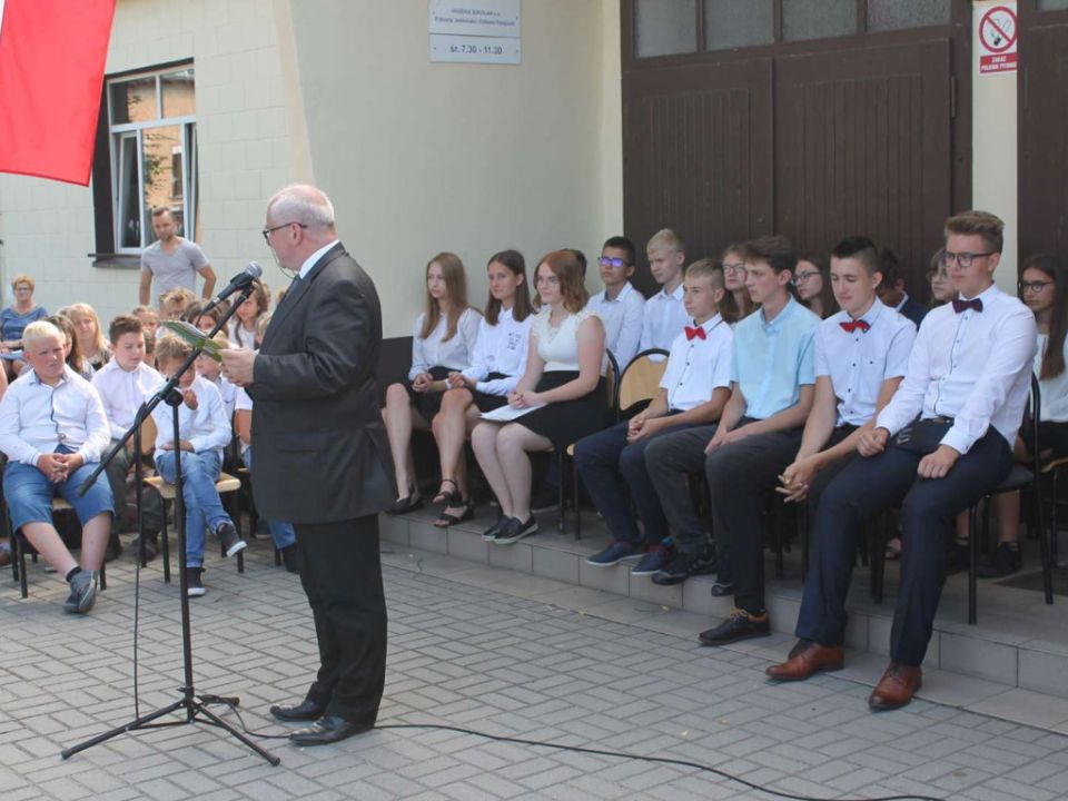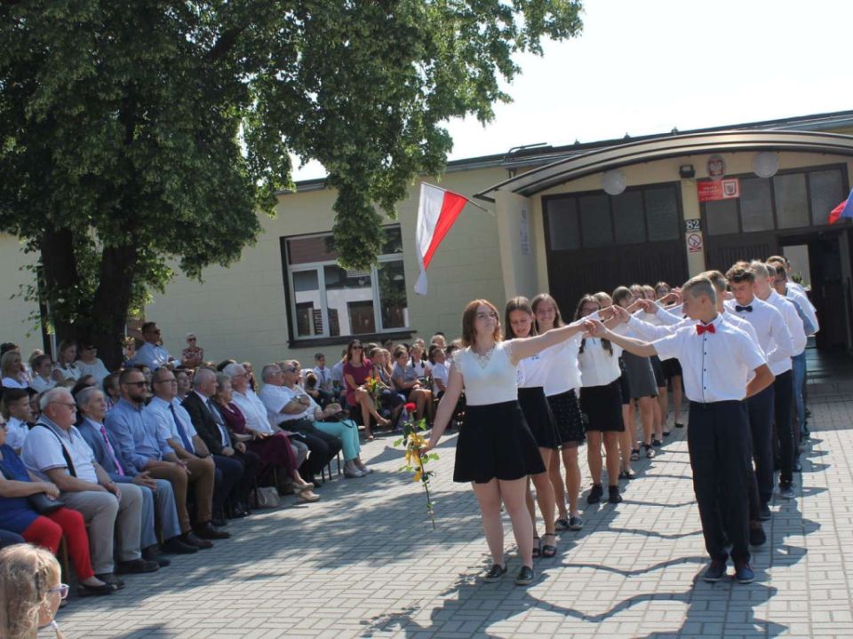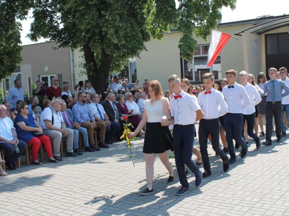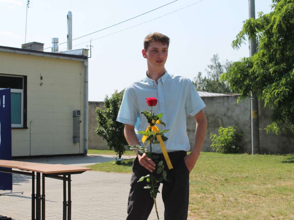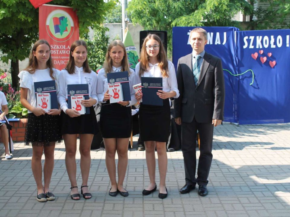 W środę 19 czerwca uczniowie i pracownicy Szkoły Podstawowej im. Tadeusza Łopuszańskiego w Dąbczu uroczyście podsumowali 10 miesięcy pracy. Było to wyjątkowe zakończenie roku szkolnego, gdyż po pierwsze uroczysta akademia odbyła się przed budynkiem szkoły, a po drugie nasza szkoła pożegnała pierwszy po latach rocznik ósmoklasistów. To właśnie oni byli głównymi bohaterami tego dnia. Podczas apelu wychowawca klasy ósmej, p. Jacek Ptaszyński, wręczył swoim wychowankom świadectwa ukończenia szkoły podstawowej, jednocześnie wyróżniając czworo z nich za bardzo dobre wyniki w nauce oraz wzorowe zachowanie (Weronikę Gmerek, Annę Glapiak, Julię Smołę, Zuzannę Wojtkowiak). Ponadto Sekretarz Miasta i Gminy Rydzyna, p. Marcin Szargan wręczył nagrody dla uczniów, którzy wielokrotne z sukcesem reprezentowali naszą szkołę w zawodach sportowych. Najcenniejsze nagrody – statuetki ufundowane przez Fundację im. Tadeusza Łopuszańskiego, za aktywność w działaniach społecznych oraz wyróżnianie się wszechstronnymi umiejętnościami oraz wiedzą otrzymały Wiktoria Kaźmierowska oraz Zuzanna Wojtkowiak. Dyrektor Wojciech Jędrzejczak przyznał także honorowy tytuł Przyjaciół Naszej Szkoły Podstawowej im. Tadeusza Łopuszańskiego Kole Gospodyń Wiejskich w Dąbczu. Wyjątkową akademię zwieńczył polonez oraz występ w wykonaniu ósmoklasistów, który okazał się emocjonalną karuzelą, raz bawiąc, a raz wzruszając publiczność do łez.