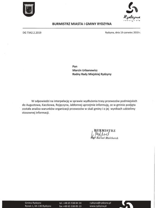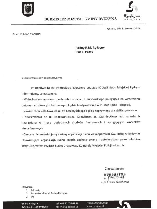 Odpowiedzi na interpelacje radnych z Rydzyny