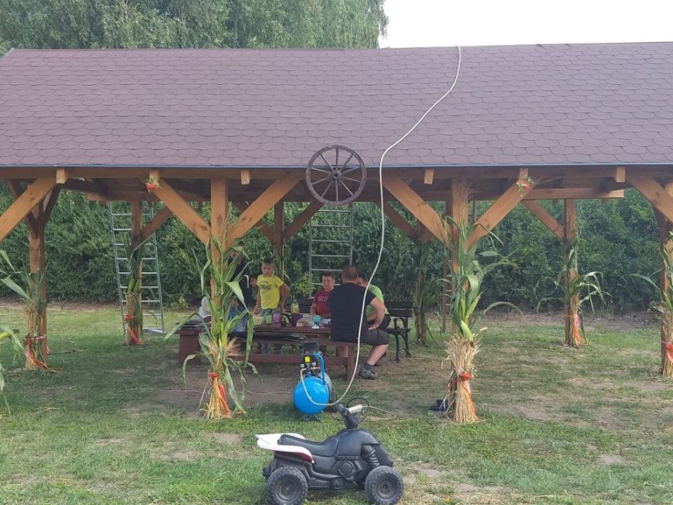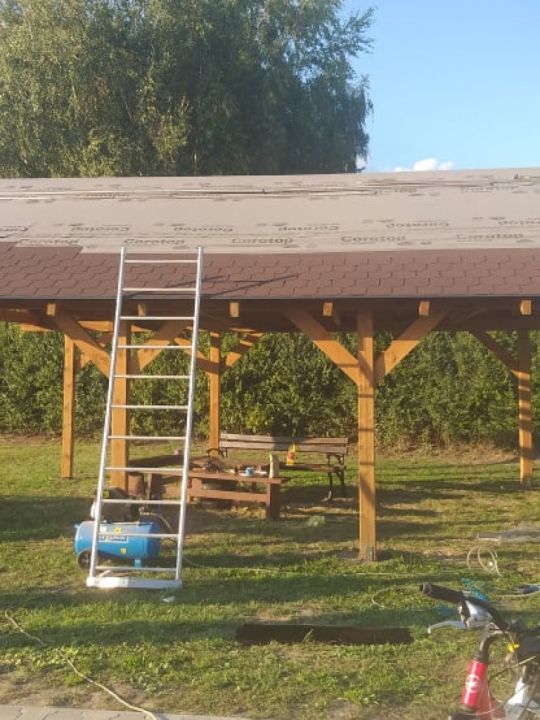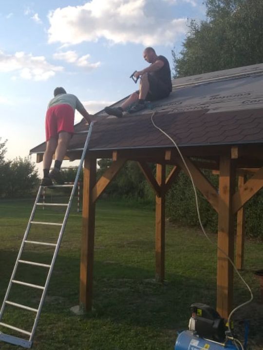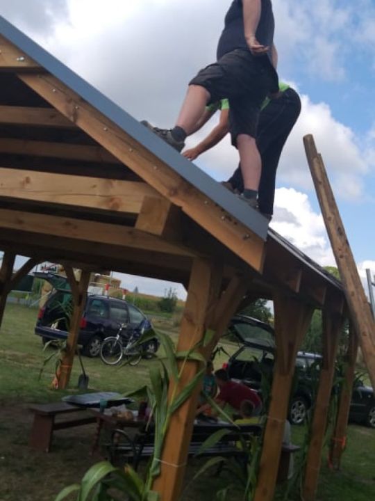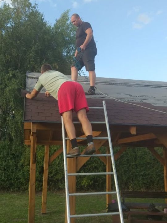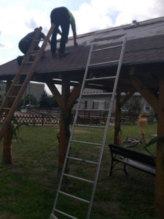 W Przybiniu zebrała się grupa mieszkańców która w czynie społecznym zakończyła budowę wiaty na boisku. Prace polegały na położeniu gontów na dach oraz opierzenia. Altanka służy mieszańcom nie tylko podczas zabaw okolicznościowych ale również chroni przed słońcem osoby które przebywają na placu zabaw.