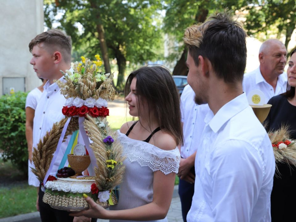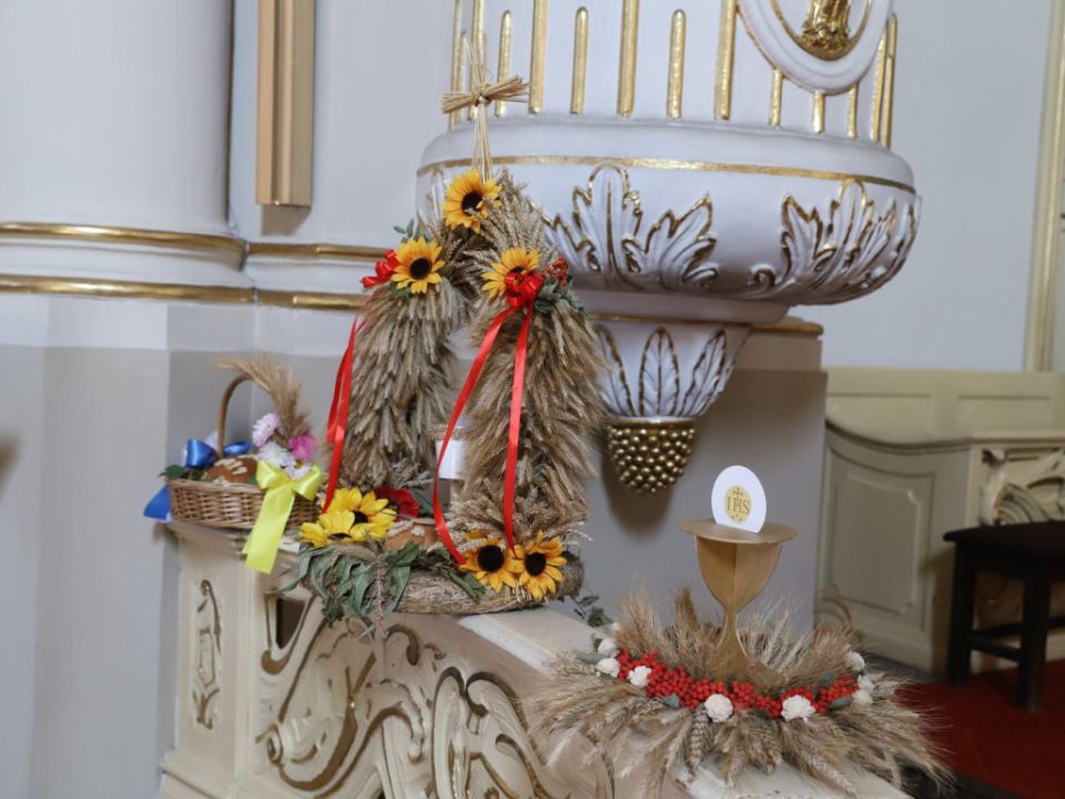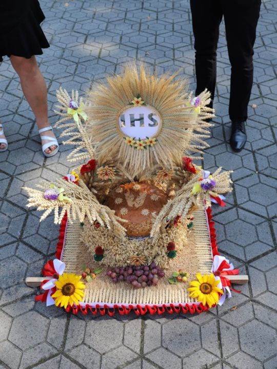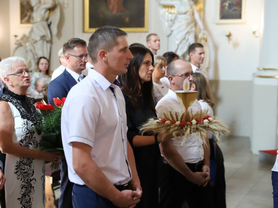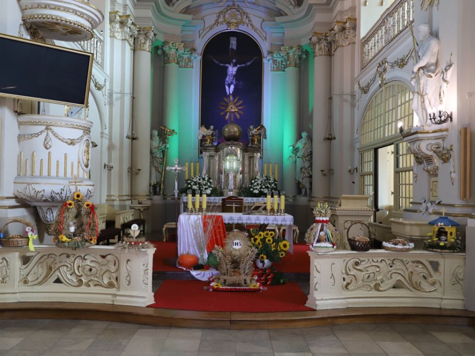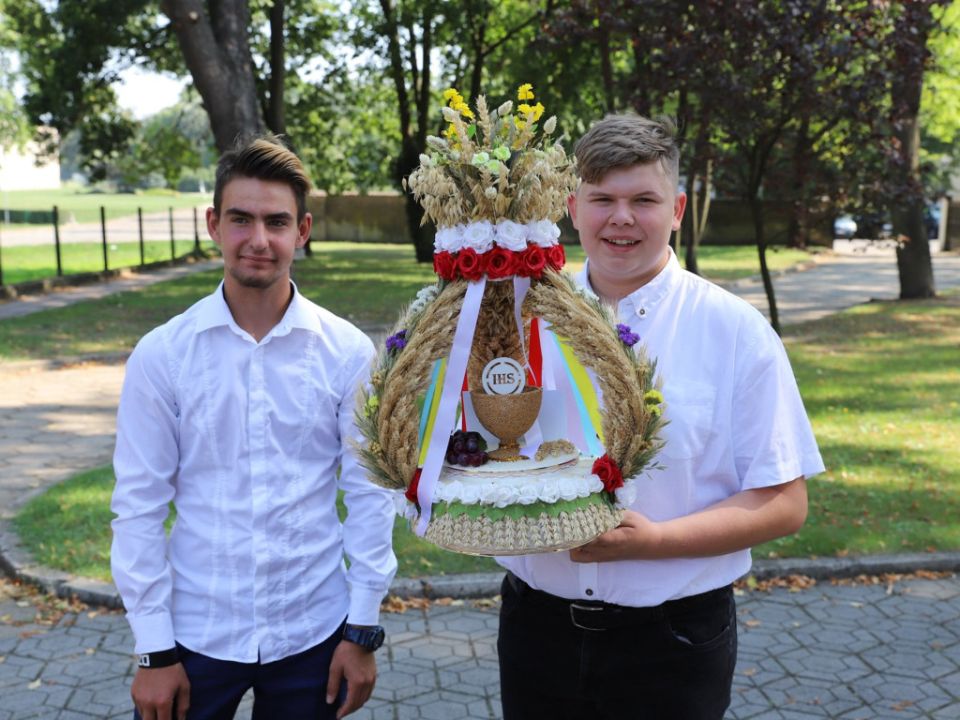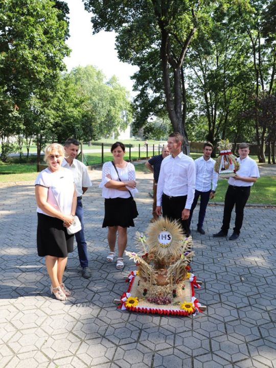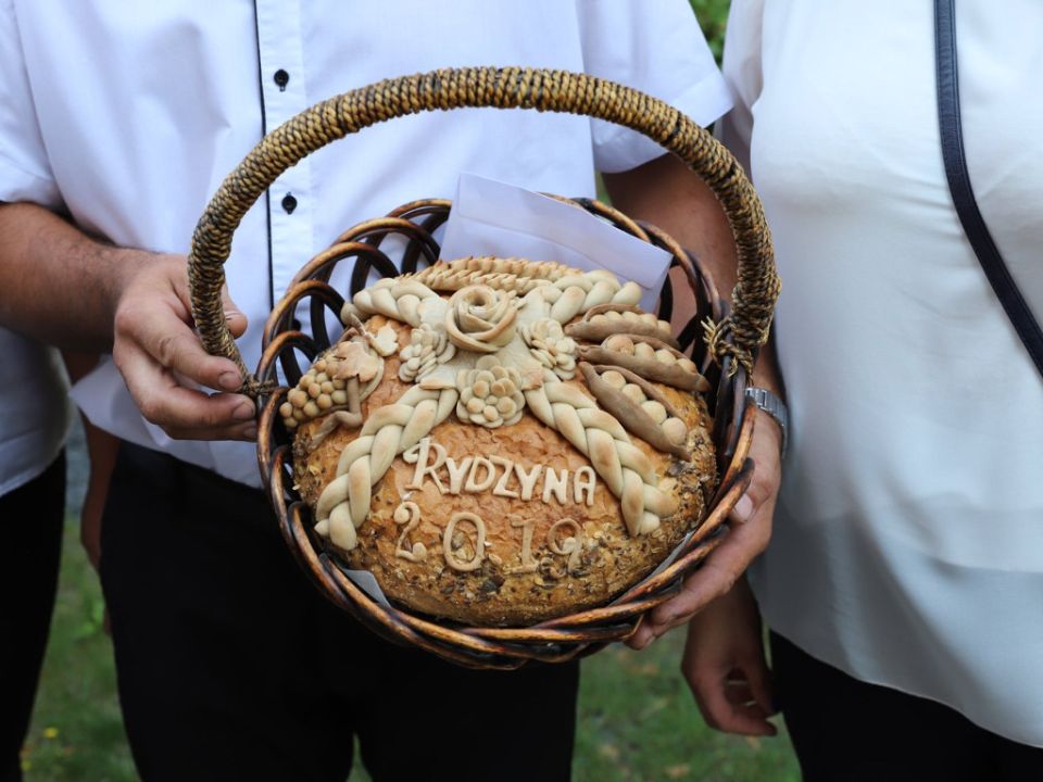 Msza dożynkowa w Rydzynie nie tylko stanowiła podziękowanie za plony, ale również pozwoliła na prezentację pięknych wieńców. Co roku mieszkańcy wsi i gospodarze pokazują kunszt swojej pracy.
