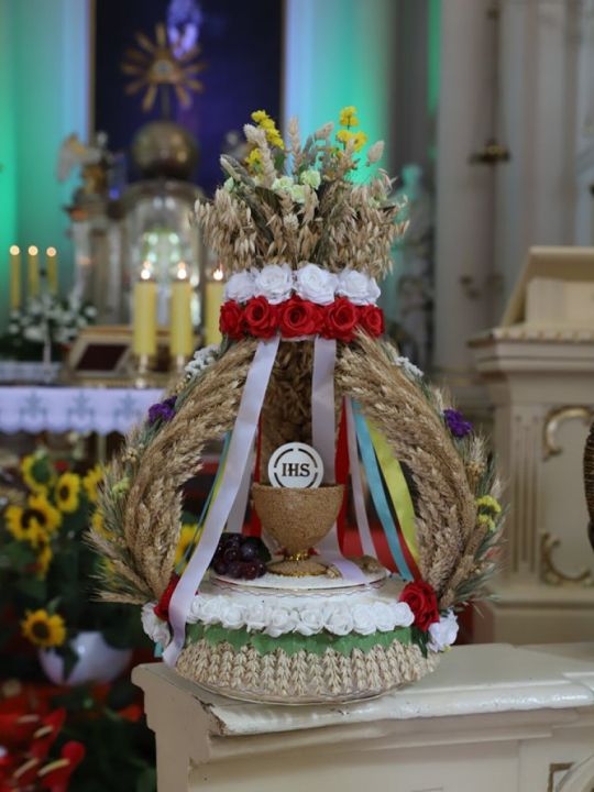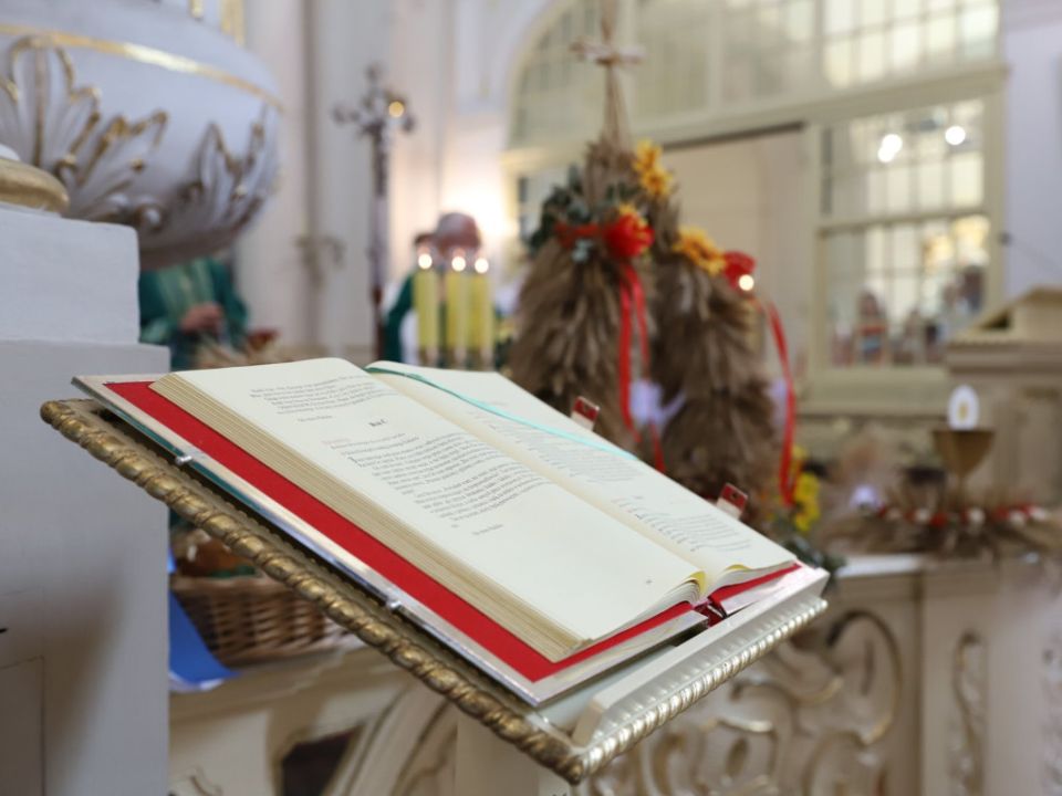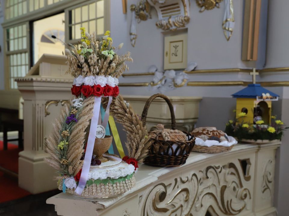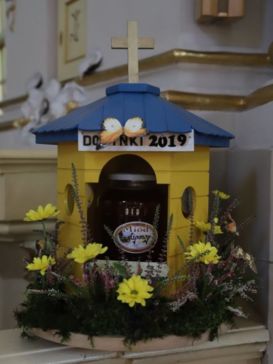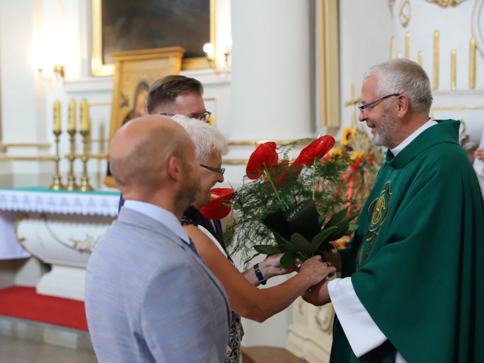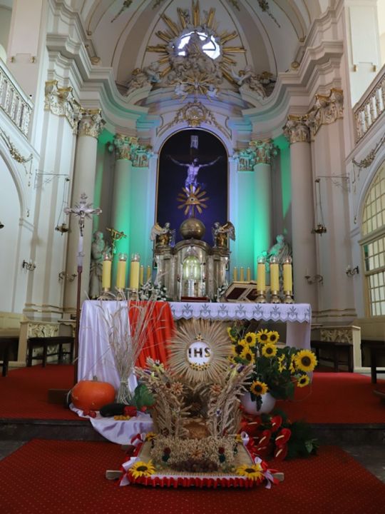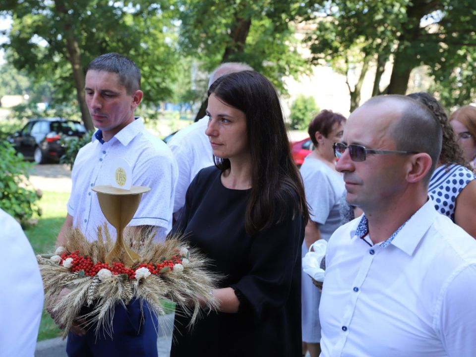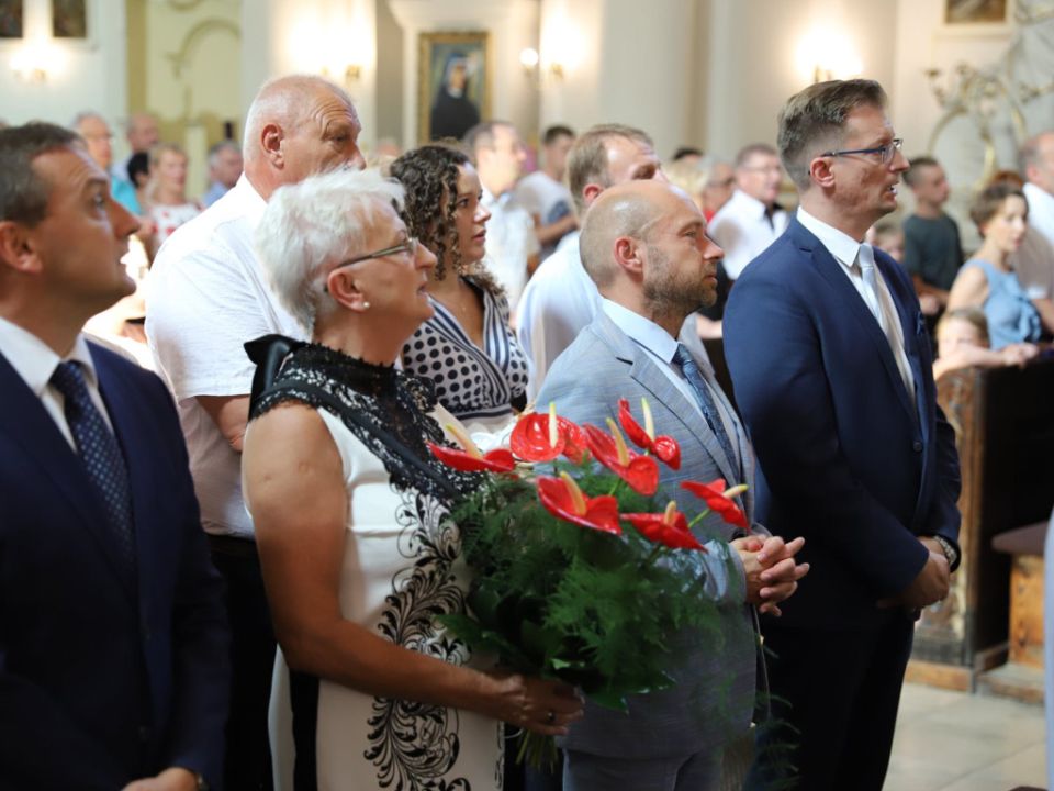 Msza dożynkowa w Rydzynie nie tylko stanowiła podziękowanie za plony, ale również pozwoliła na prezentację pięknych wieńców. Co roku mieszkańcy wsi i gospodarze pokazują kunszt swojej pracy.