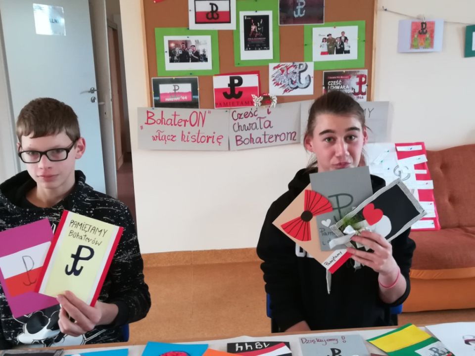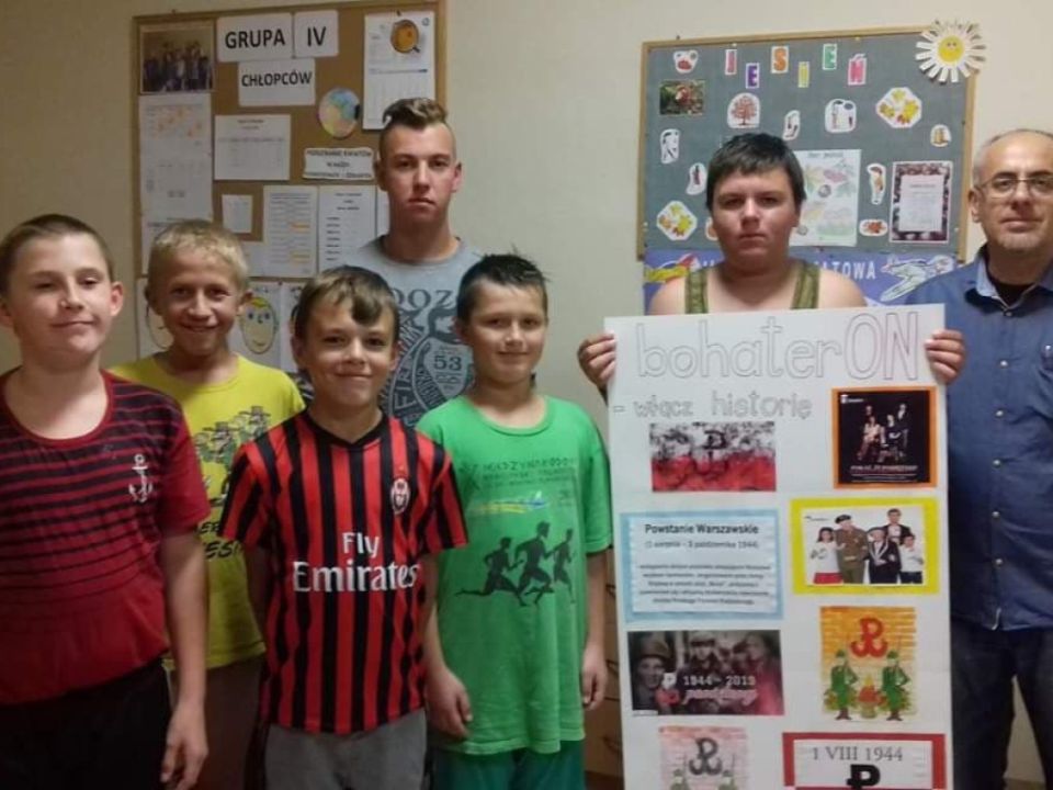 Wychowankowie Internatu SOSW w Rydzynie wspólnie ze swoimi wychowawcami p. Elżbietą Marciniak i p. Robertem Leciejewskim poznają historyczne wydarzenia – dowiadują się czym było Powstanie Warszawskie, kiedy się odbyło i kto w nim walczył. Swoim zaangażowaniem w realizację projektu dziękują Powstańcom Warszawskim za bohaterską postawę i piękną, żywą historię.