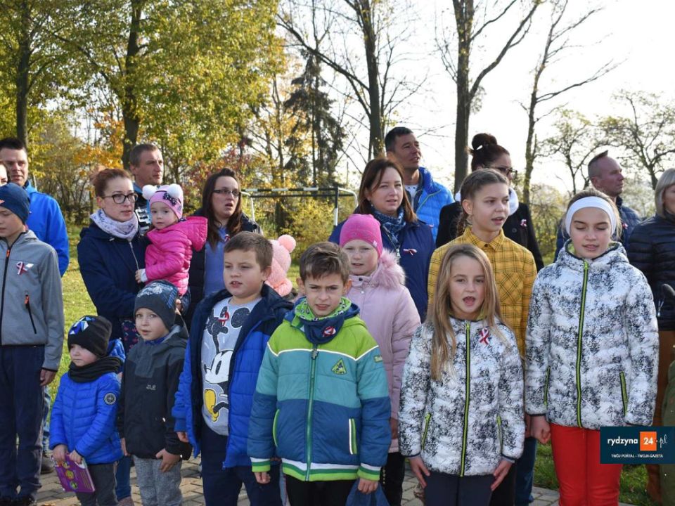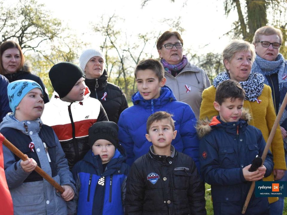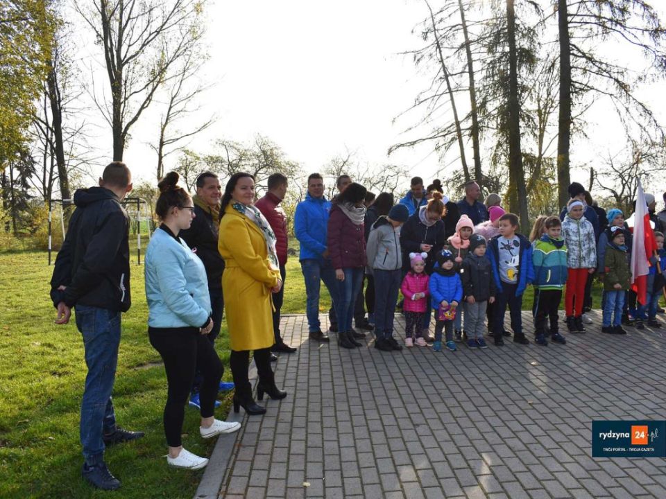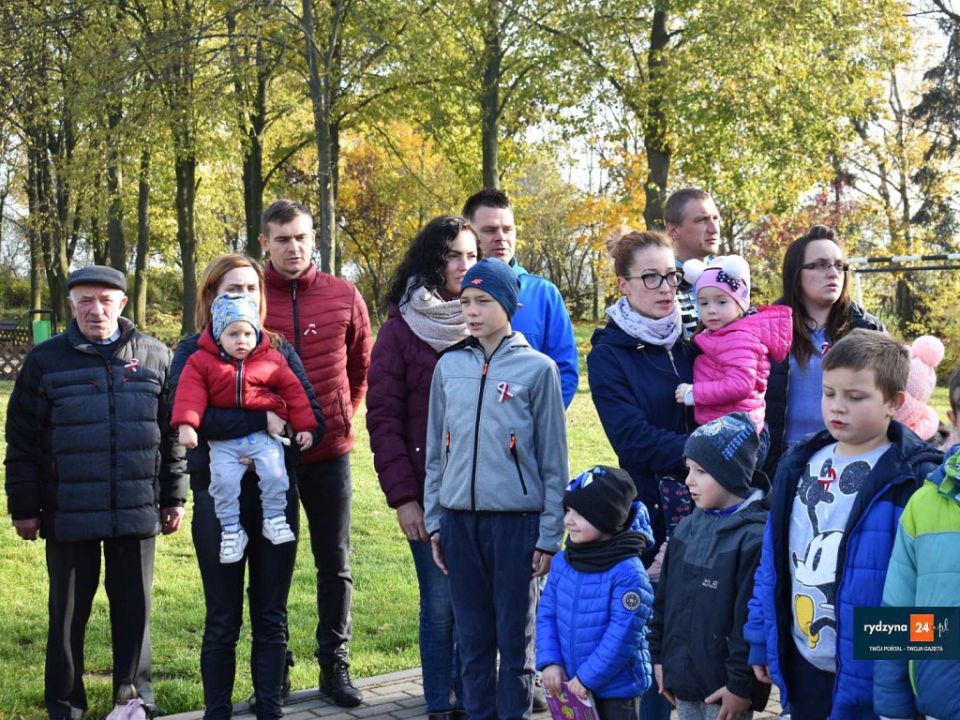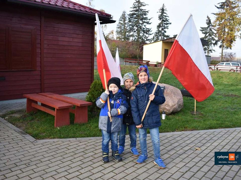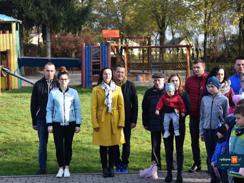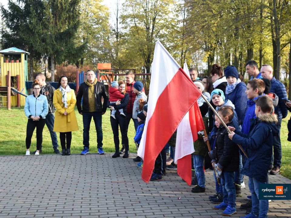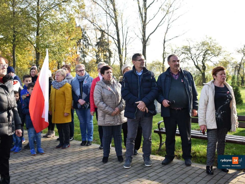 Mieszkańcy Robczyska 11 listopada zebrali się przy świetlicy i zaśpiewali hymn Polski w celu upamiętnienia 101 rocznicy odzyskania niepodległości.