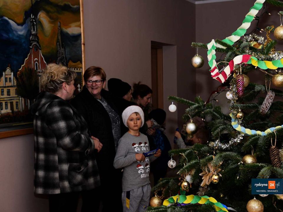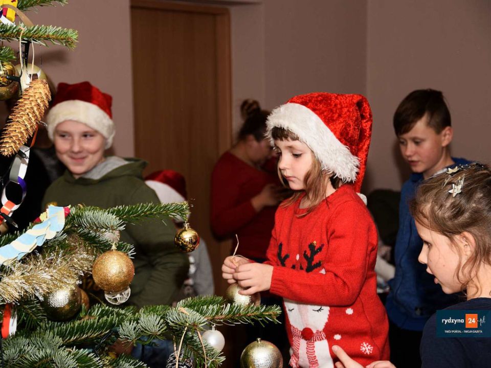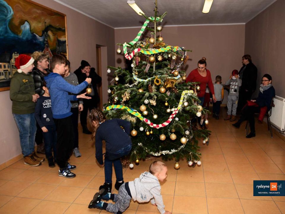 W Tarnowej Łące ubrali choinkę Wiadomości 2019-12-07 W Tarnowej Łące widać że zbliżają się święta w świetlicy wiejskiej dzieci wraz z rodzicami przyozdobiły choinkę. Był słodki poczęstunek oraz wiele radości.