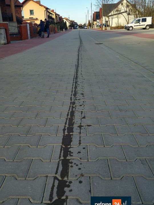 Mieszkańcy ulicy Ferrariego niezbyt długo nacieszyli nową kostką. Została ona zabrudzona, prawdopodobnie substancją ropopochodną, i nie odwracalnie zniszczona.  Plama ciągnie się od połowy nowej drogi aż do ronda i dalej w kierunku Dąbcza.
