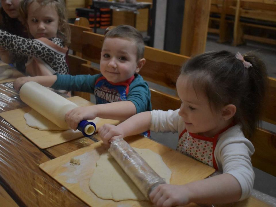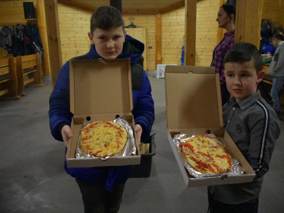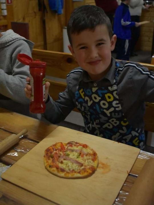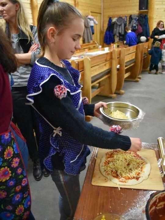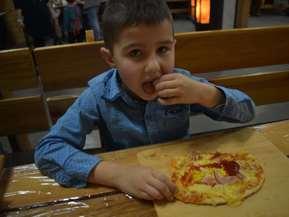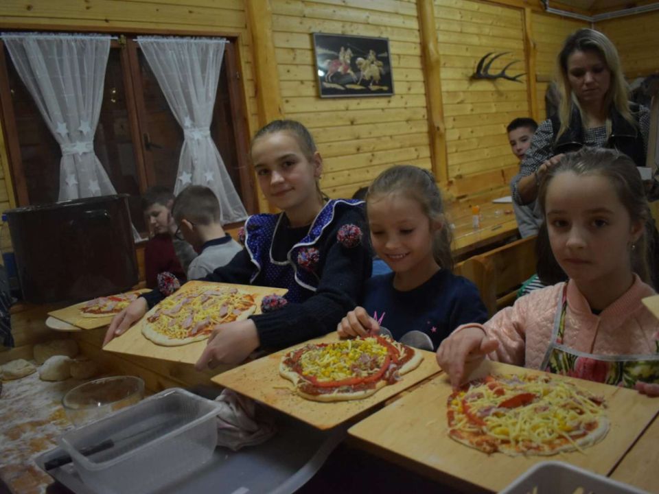 Podczas spotkania dzieci wałkowały ciasto oraz nakładały ulubione dodatki. W trakcie wypiekania pizzy uczestnicy dekorowali opakowania w których zanieśli pizze rodzicom. Nie zabrakło również zabawy i gier planszowych.