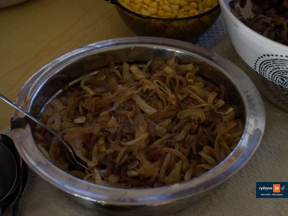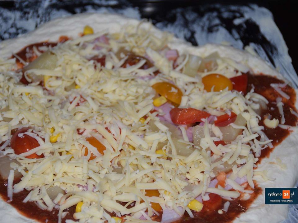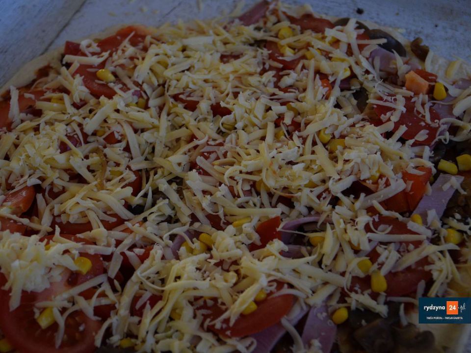 Tym razem był czas na pieczenie pizzy. Każdy mógł według swojego upodobania udekorować swoją pizzę.