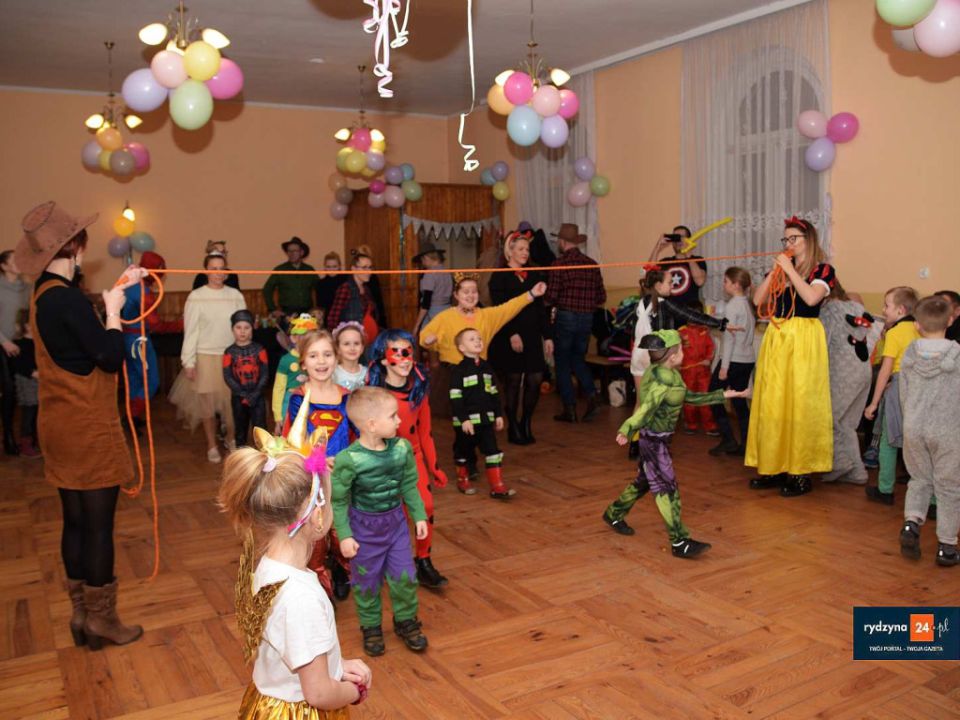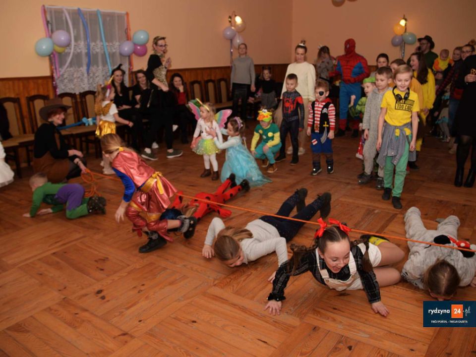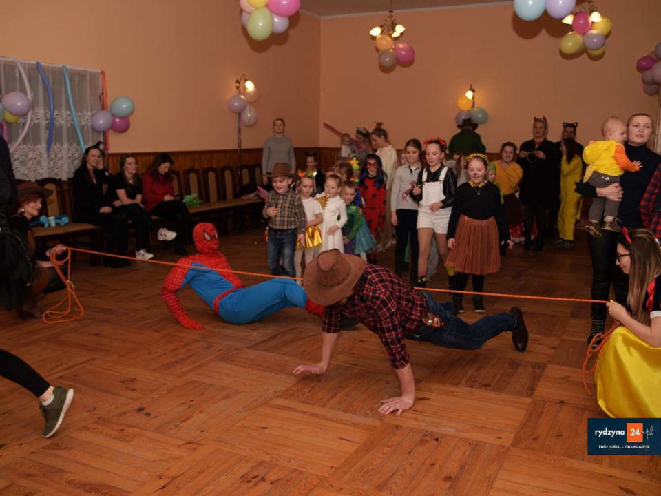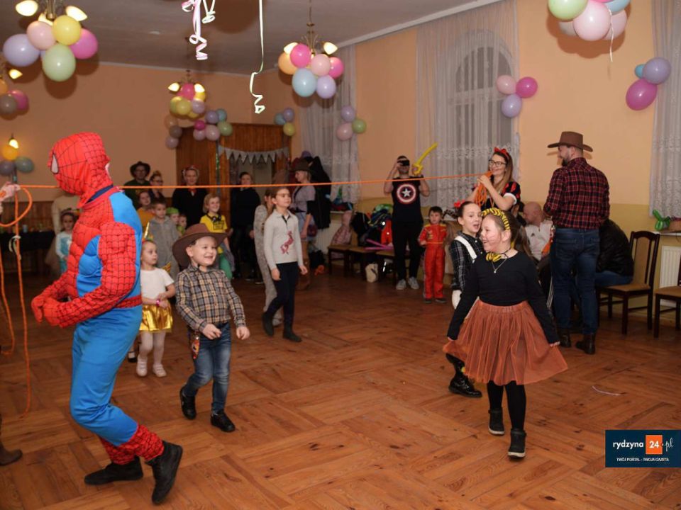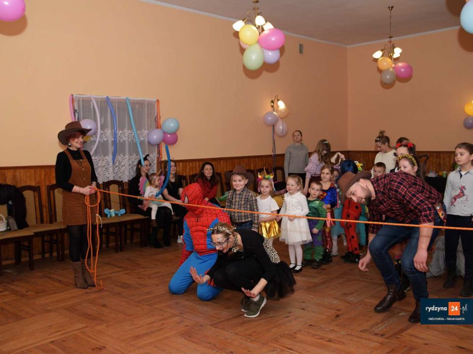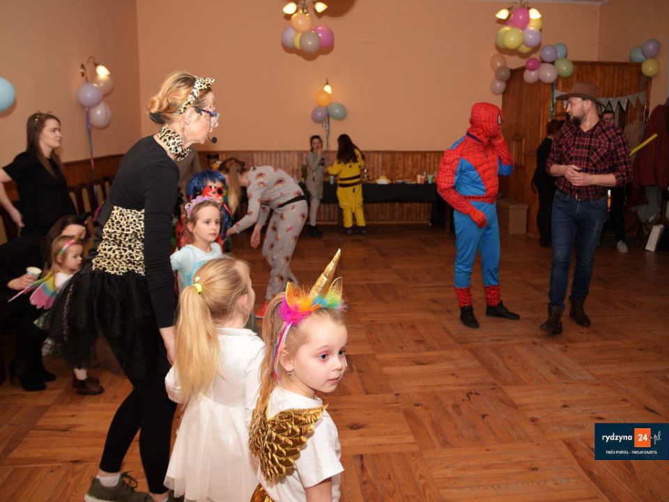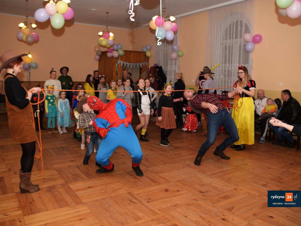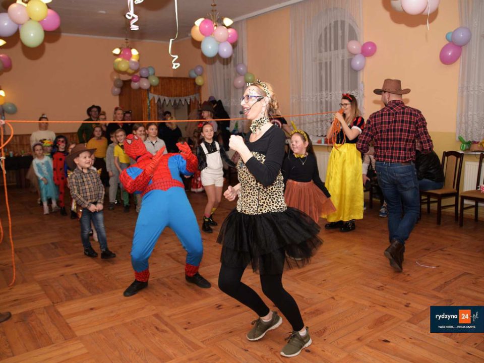 Dzieci i dorośli szaleli na balu karnawałowym. Sołtys, rada sołecka oraz radni zadbali o zdrowy owocowy poczęstunek i zabawę z animatorką.