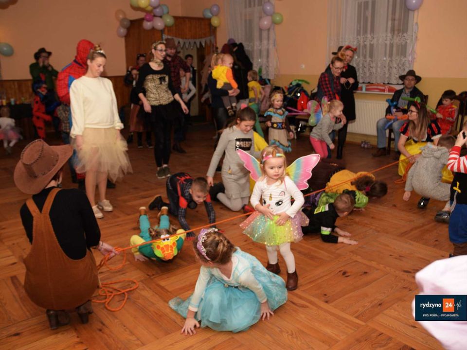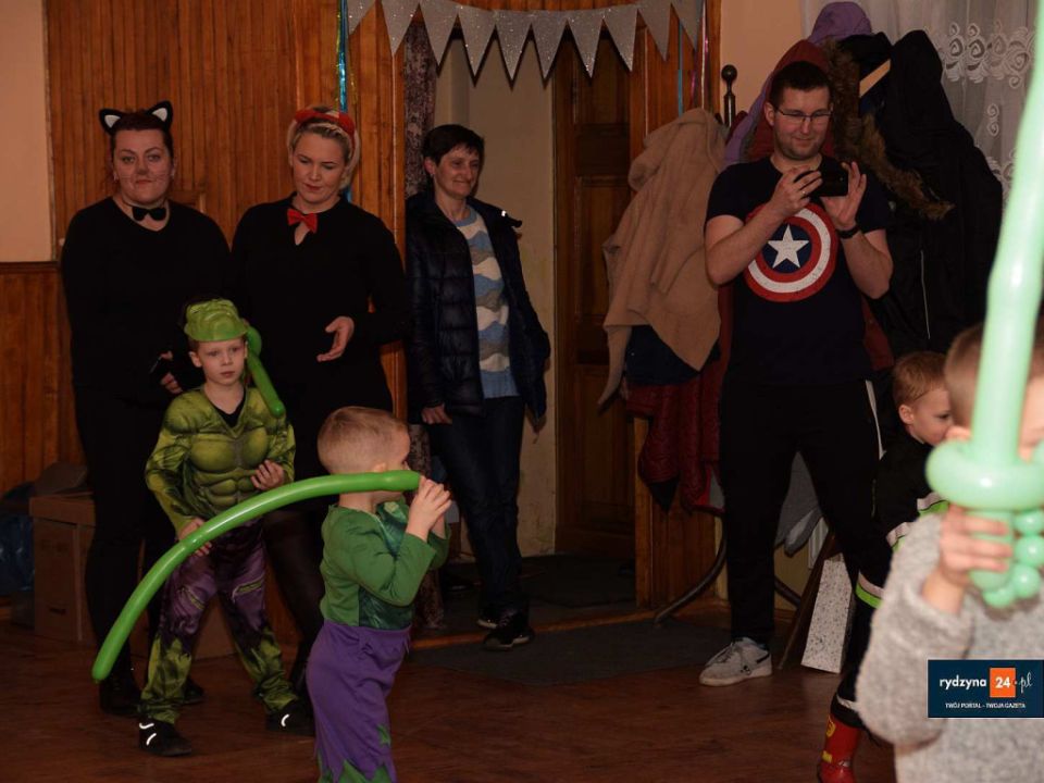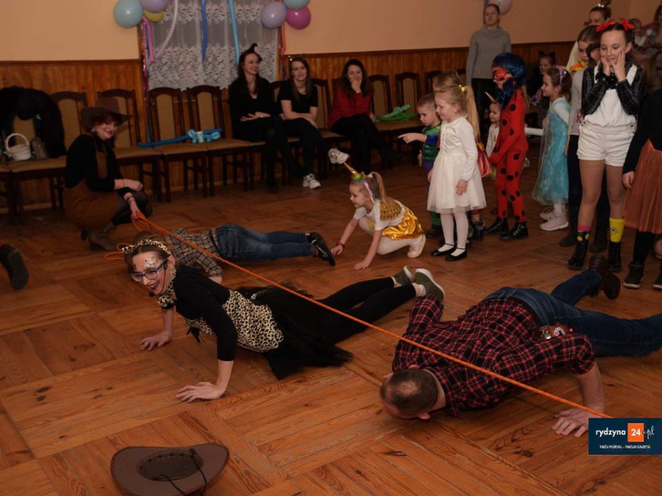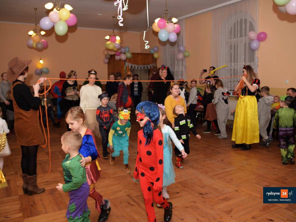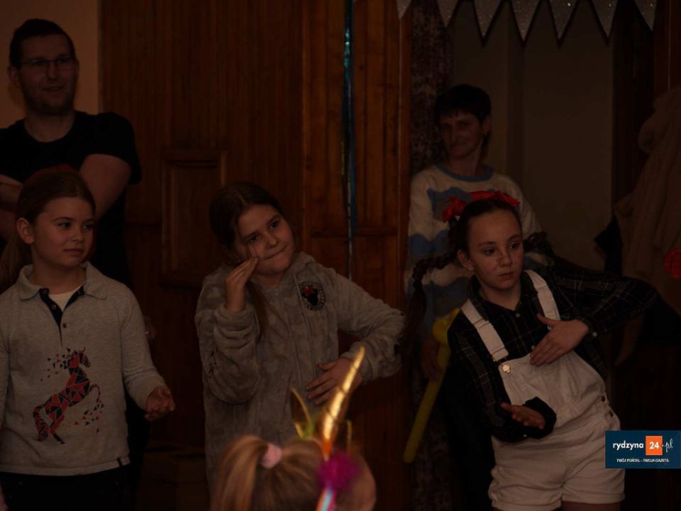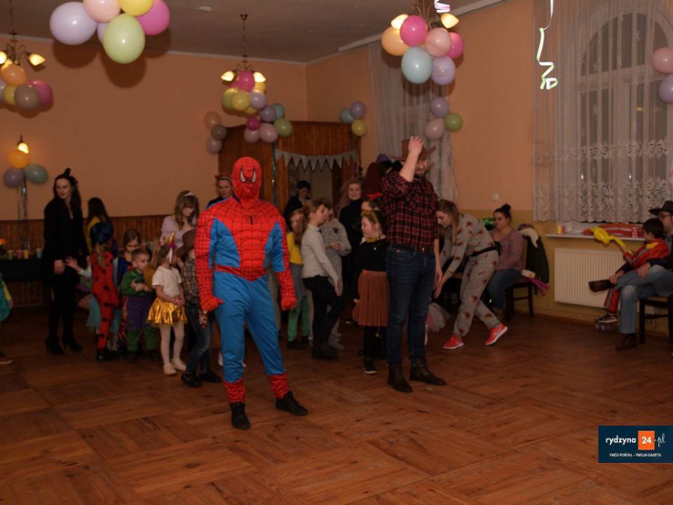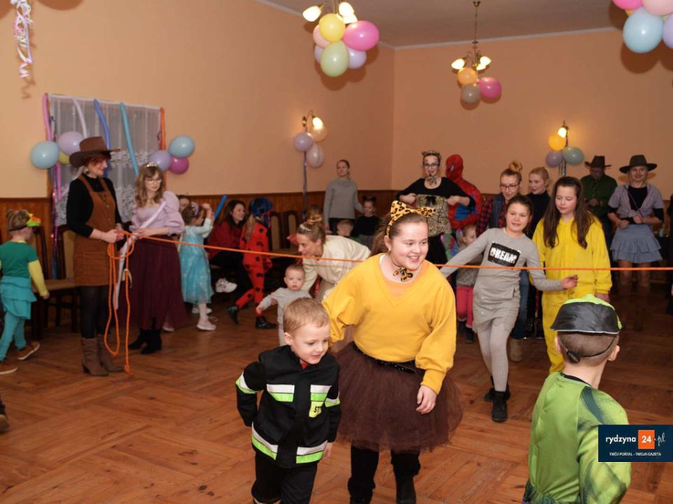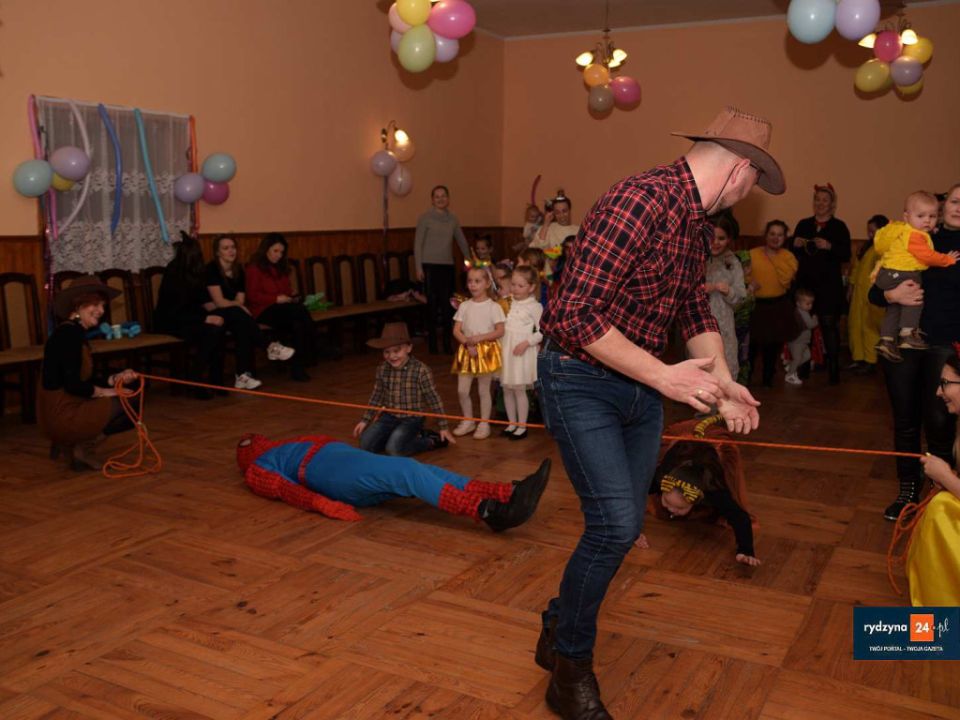 Dzieci i dorośli szaleli na balu karnawałowym. Sołtys, rada sołecka oraz radni zadbali o zdrowy owocowy poczęstunek i zabawę z animatorką.