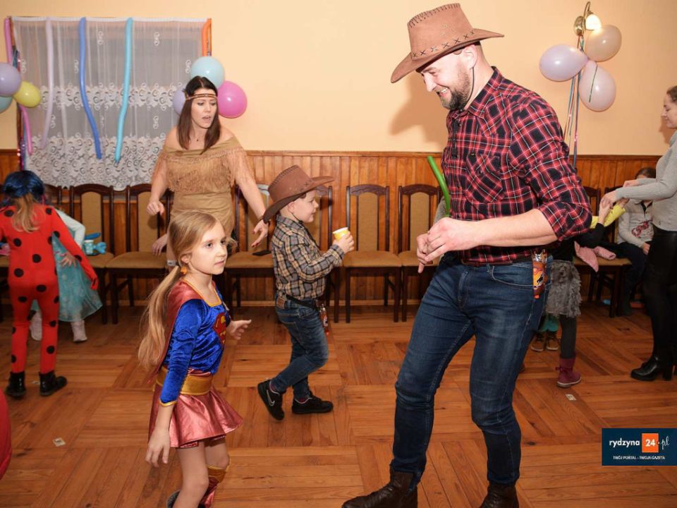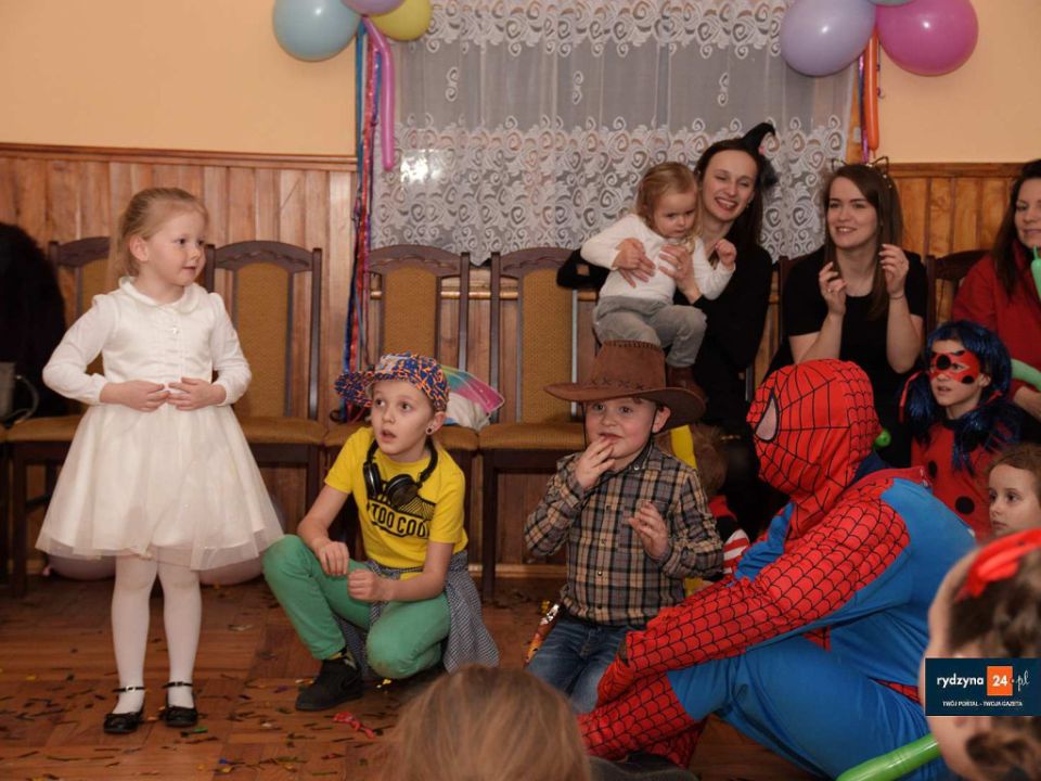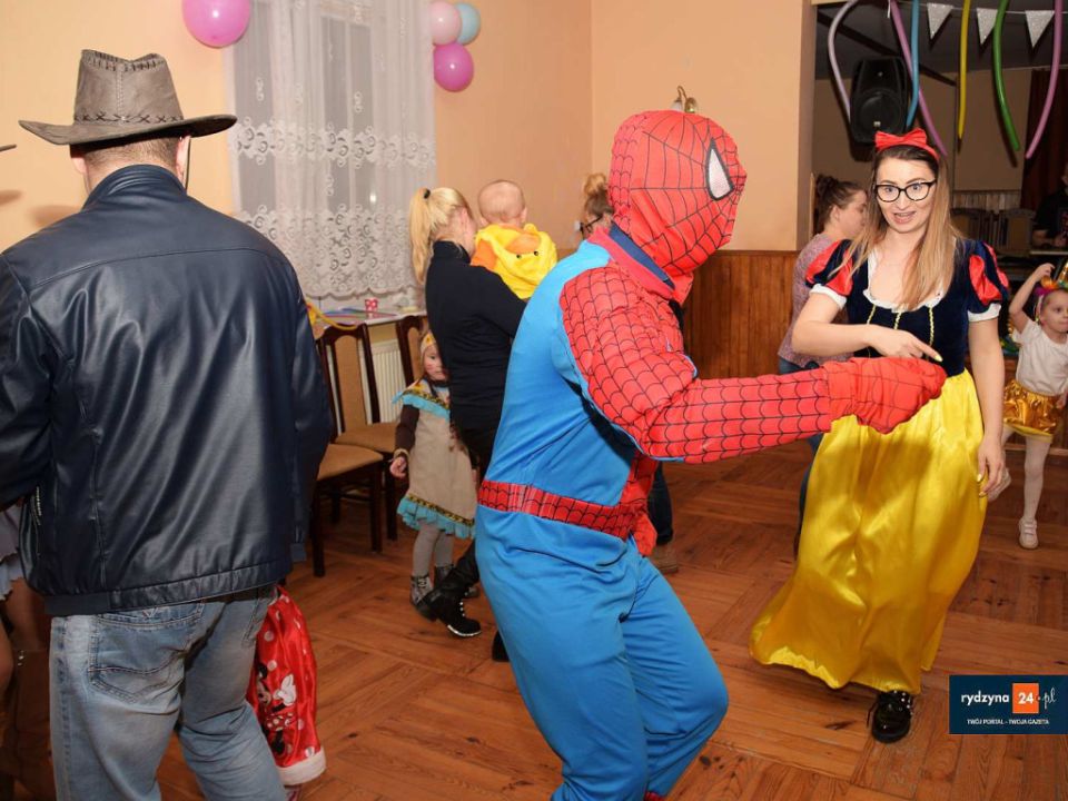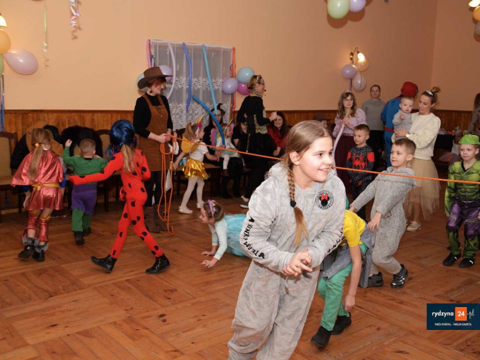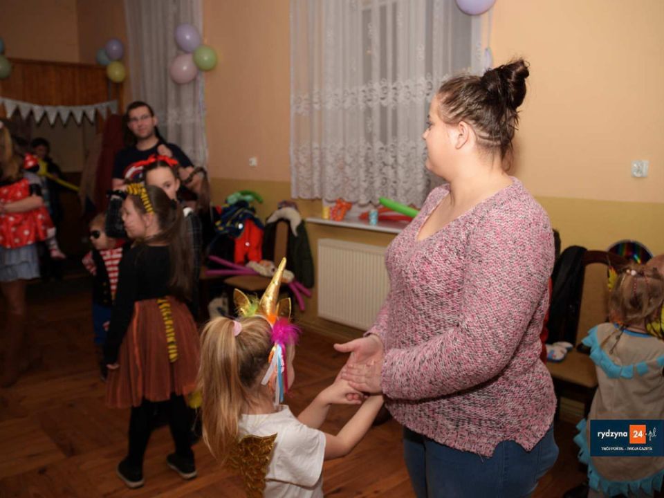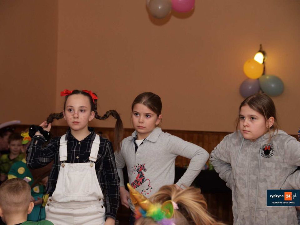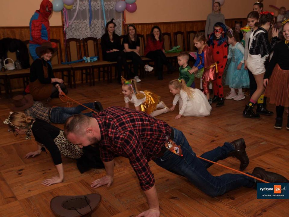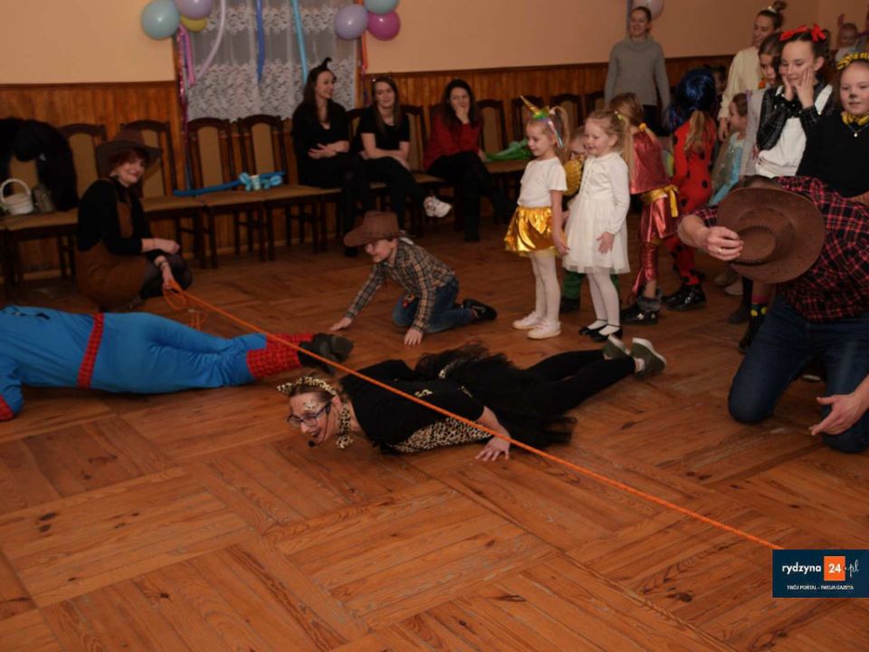 Dzieci i dorośli szaleli na balu karnawałowym. Sołtys, rada sołecka oraz radni zadbali o zdrowy owocowy poczęstunek i zabawę z animatorką.