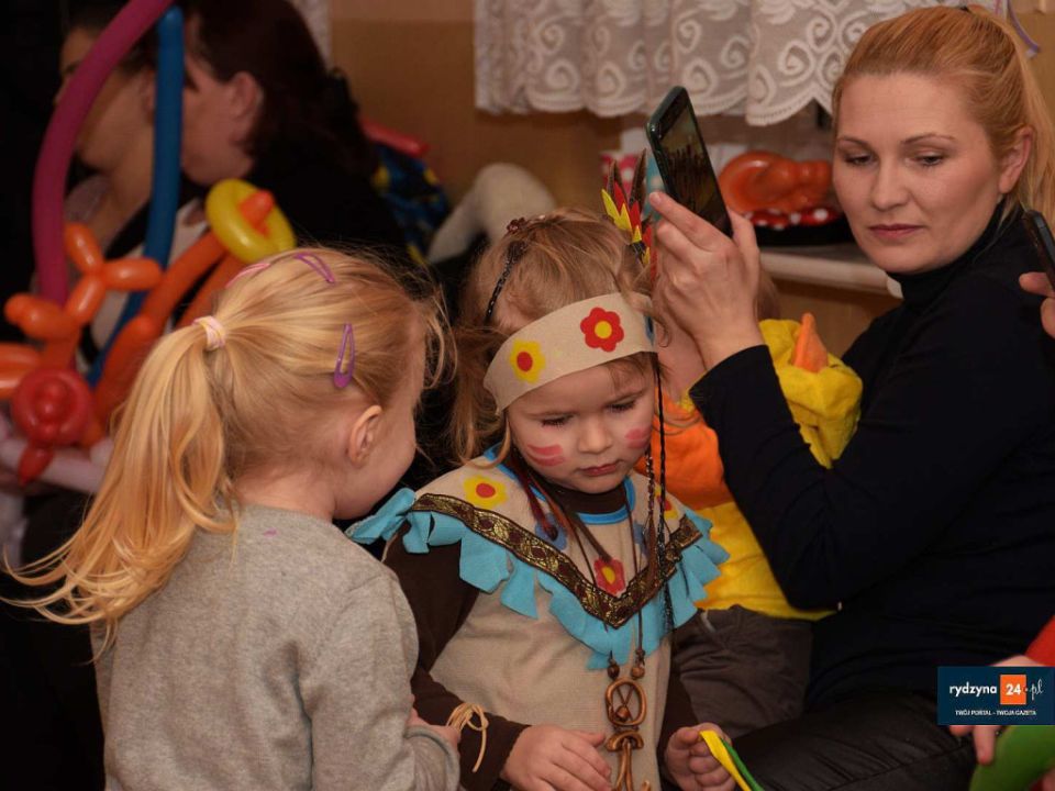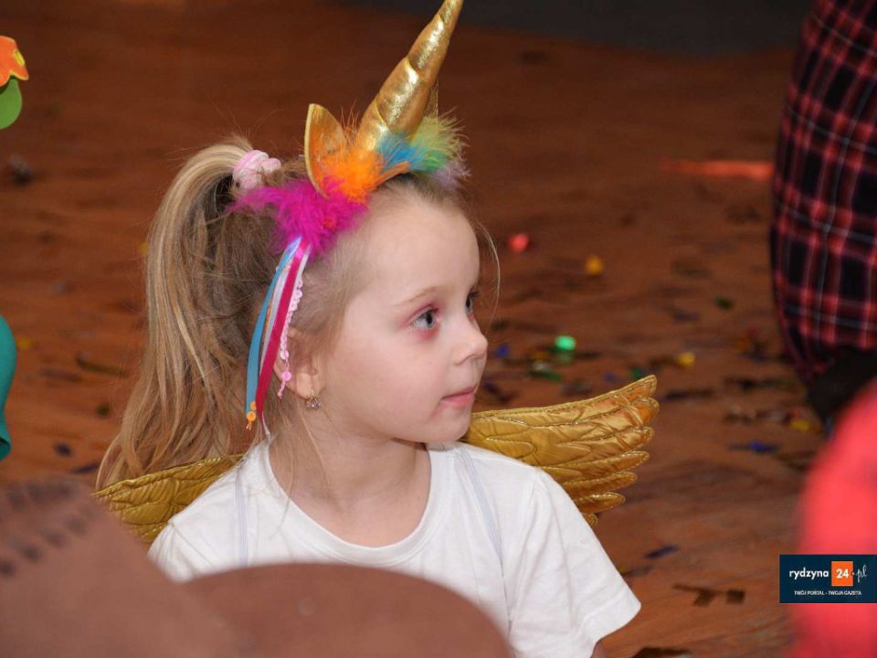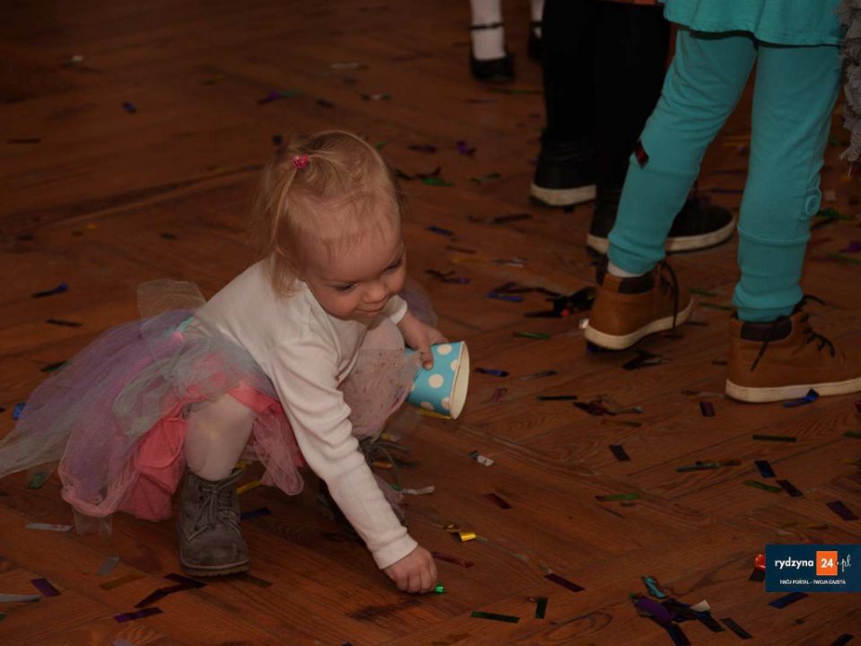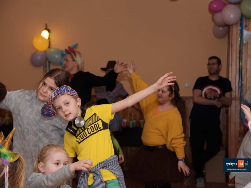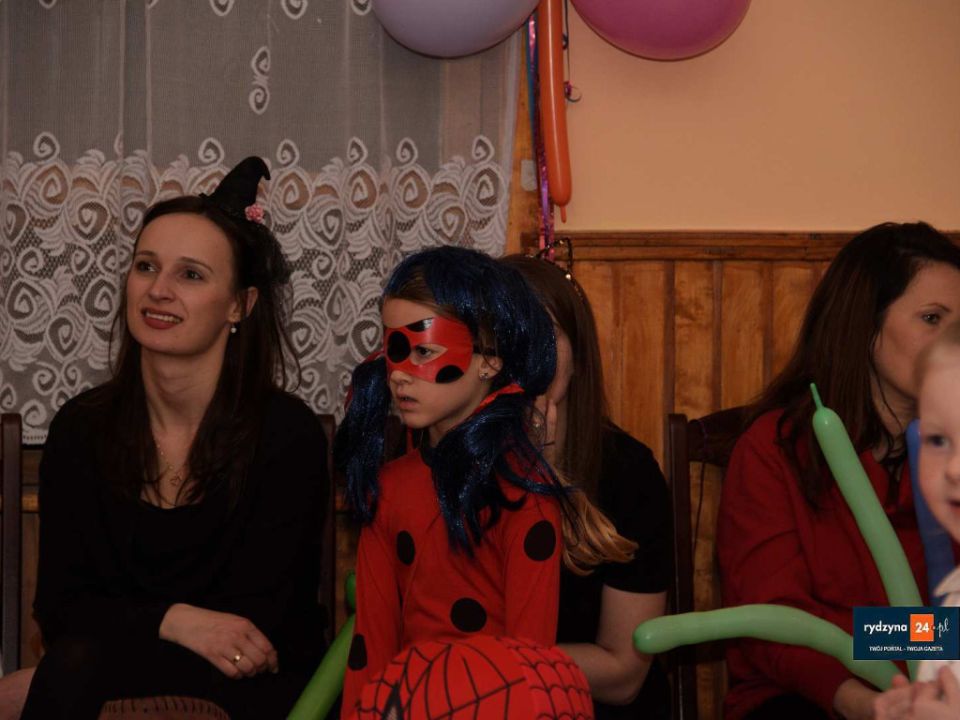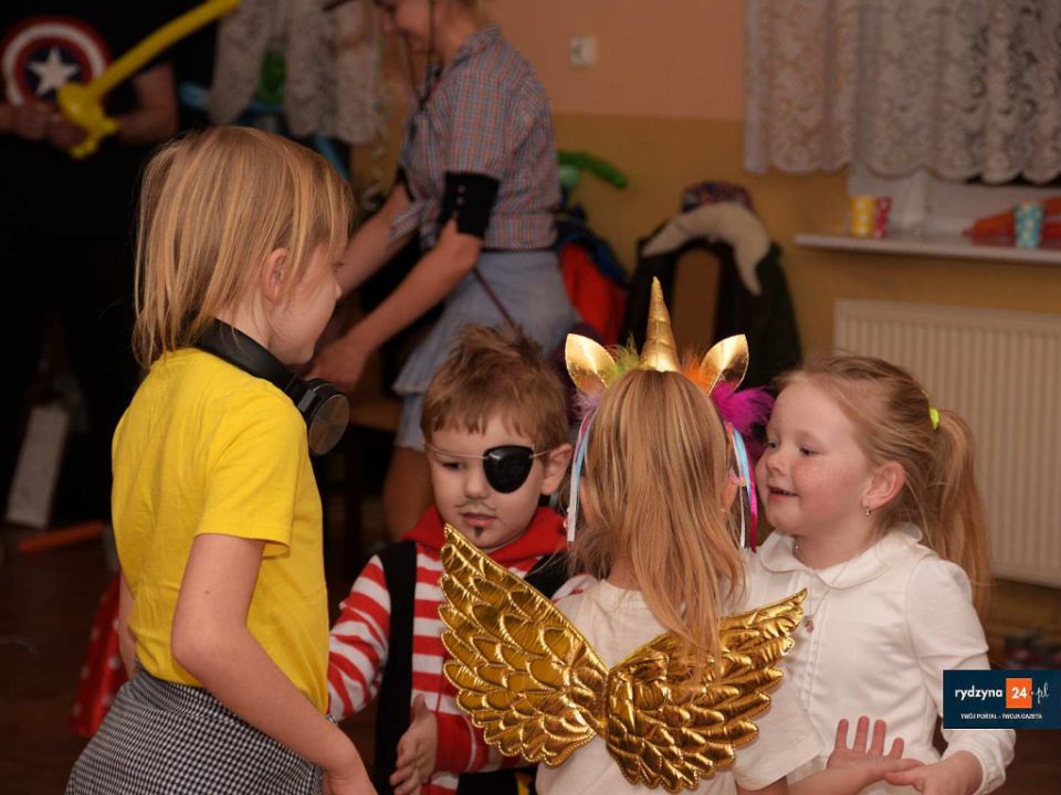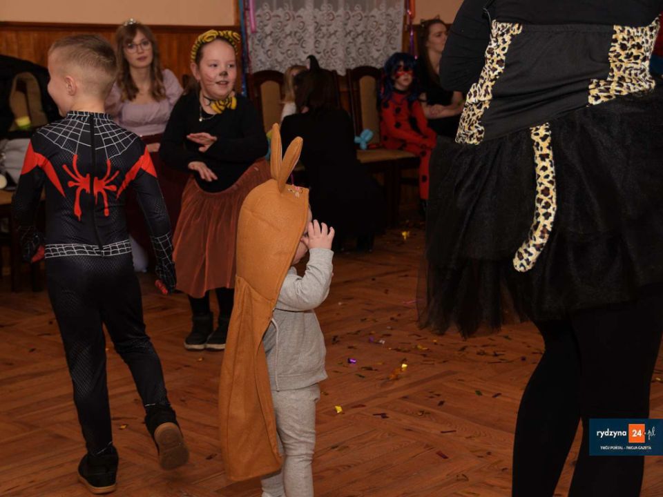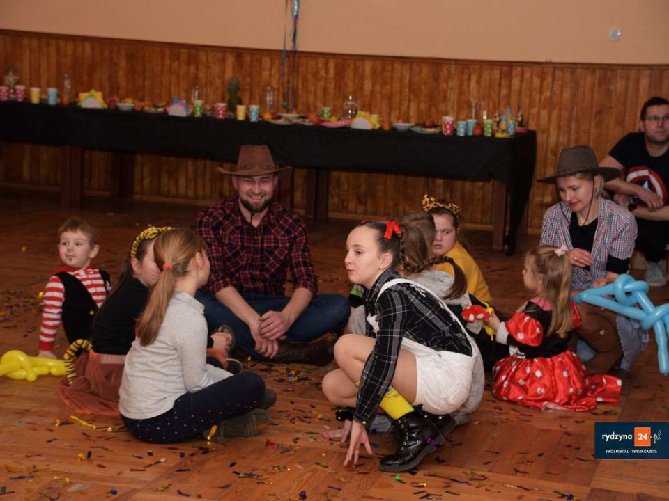 Dzieci i dorośli szaleli na balu karnawałowym. Sołtys, rada sołecka oraz radni zadbali o zdrowy owocowy poczęstunek i zabawę z animatorką.
