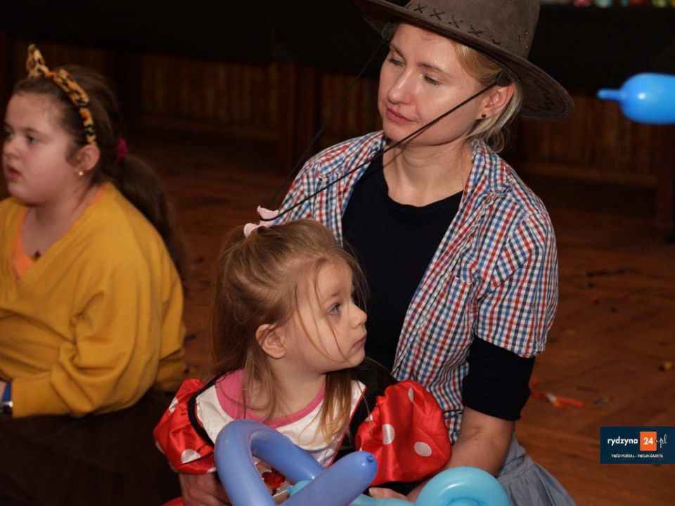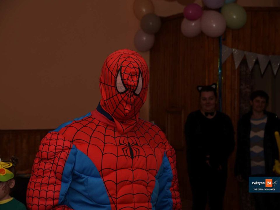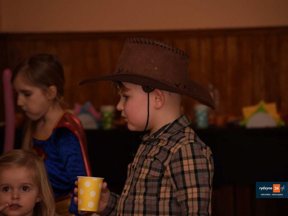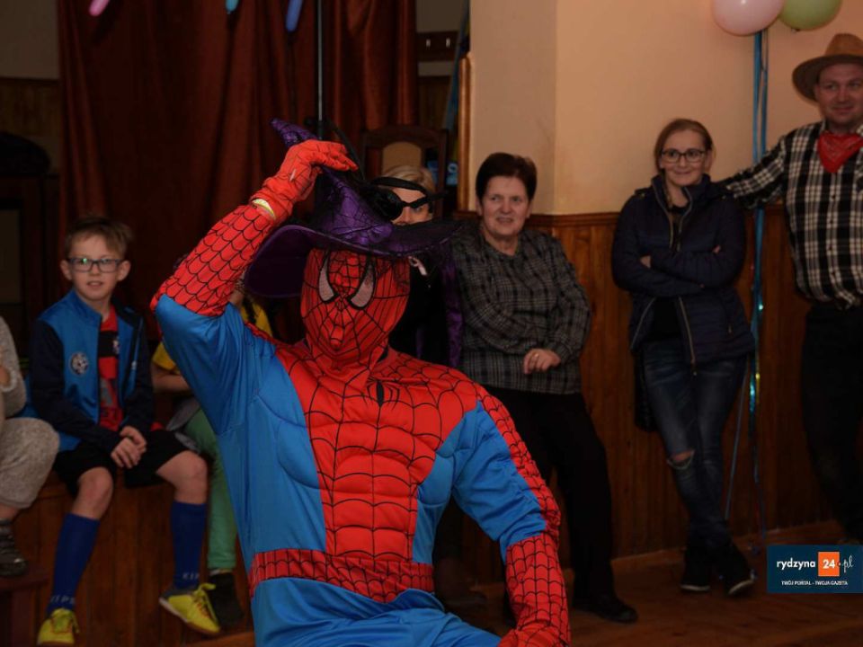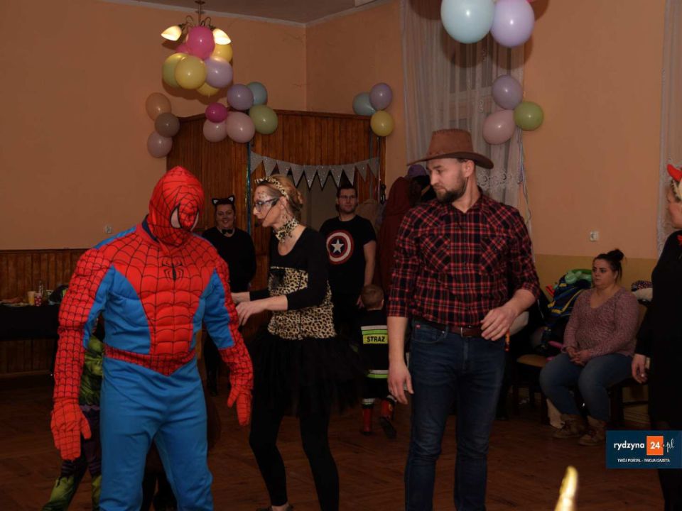 Świetlica w Dąbczu wypełniła się przebierańcami. Na sali pojawili  się kowboje, spiderman, księżniczki, motylki, itp..
