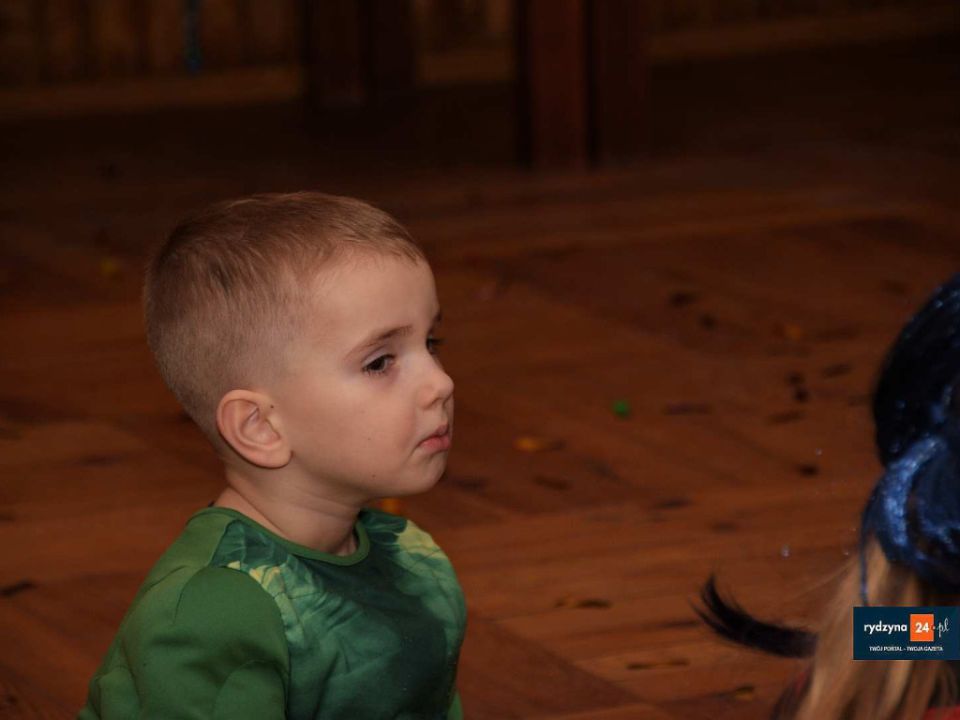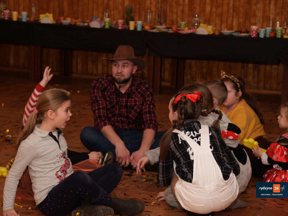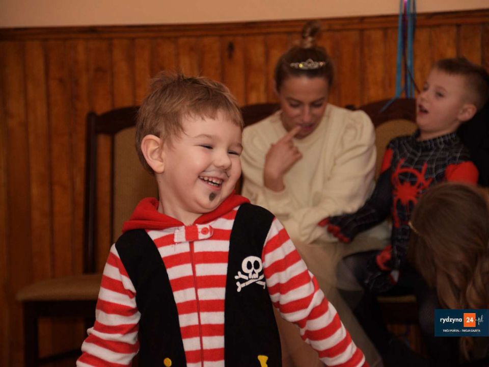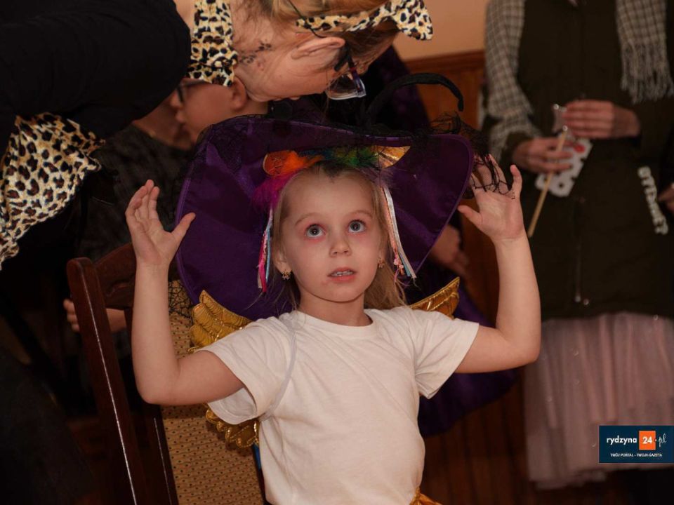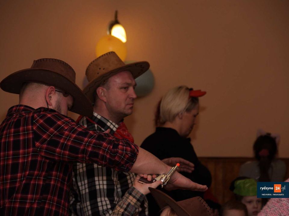 Świetlica w Dąbczu wypełniła się przebierańcami. Na sali pojawili  się kowboje, spiderman, księżniczki, motylki, itp..