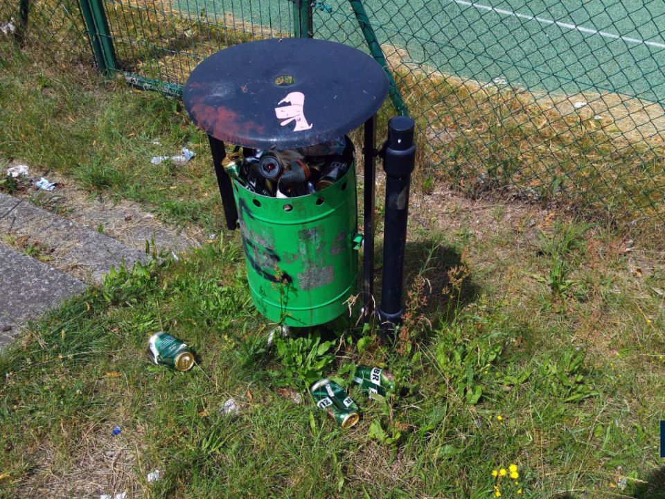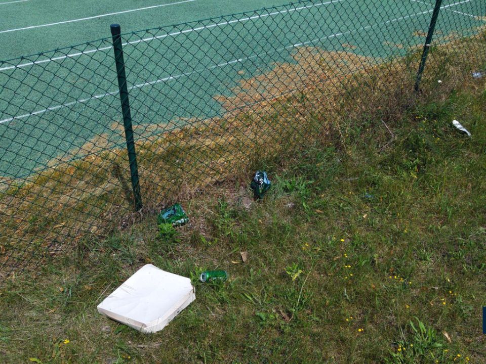 Po meczu lub sparingu przy boisku w Rydzynie można zauważyć sporo śmieci.