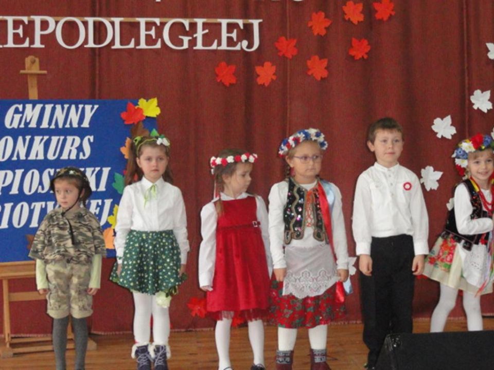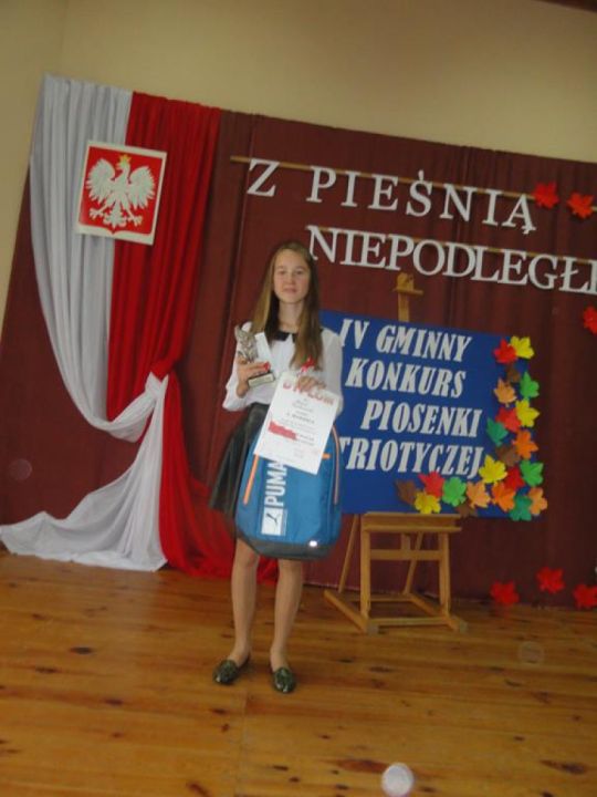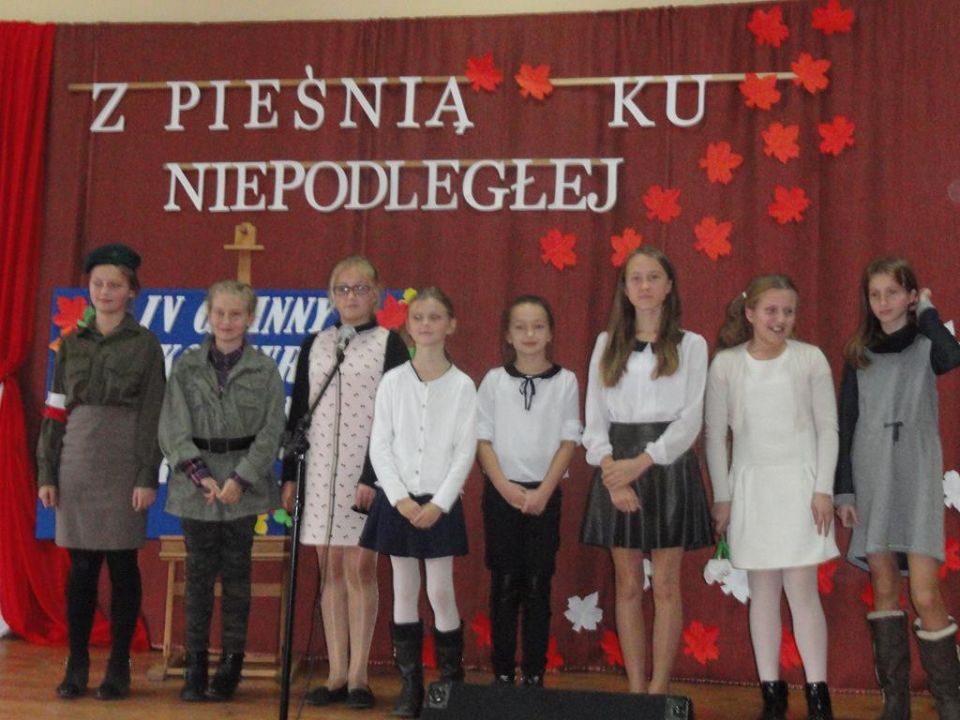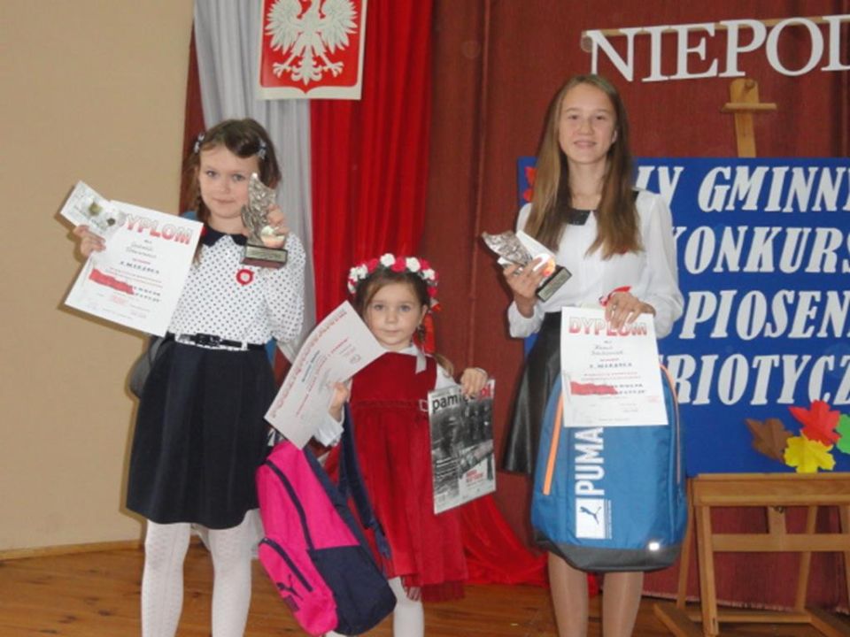 W kategorii wiekowej przedszkoli zwyciężyła Julia Urbanowicz z przedszkola w Rydzynie, która śpiewała piosenkę „Czerwone jabłuszko”, II miejsce wywalczyła Zofia Musielak reprezentująca przedszkole w Kaczkowie, która wykonała piosenkę „Płynie Wisła, płynie…” a III miejsce wyśpiewała Maja Wojtkowiak z przedszkola w Rydzynie, piosenką”Płynie Wisła, płynie”. W kategorii klas I-III najlepszą piosenkarką okazała się Gabriela Urbanowicz ze Szkoły Podstawowej w Kaczkowie, która zaśpiewała „Taki kraj”, II miejsce zajęła Oliwia Białasik ze Szkoły Podstawowej w Dąbczu piosenką „Jak orzeł, co w locie zgasł”, a III miejsce zajęła uczennica SP Kaczkowo Michalina Sadowczyk piosenką”Dziewczyna z granatem w ręce”. Kategoria klas IV-VI to wspaniałe wykonania piosenek patriotycznych, a najlepszą piosenkarką okazała się Kamila Piechowiak uczennica SP Kaczkowo piosenką „Taki kraj”. II miejsce wywalczyła Julia Ślęzak uczennica SP Kaczkowo piosenką”Dziś idę walczyć, Mamo”. III miejsce wyśpiewała Natalia Pauch -uczennica SP w Rydzynie. Nagrodą dodatkową dla laureatek jest występ podczas uroczystej akademii patriotycznej w sali balowej Zamku Rydzyńskiego w dniu 11 listopada br.