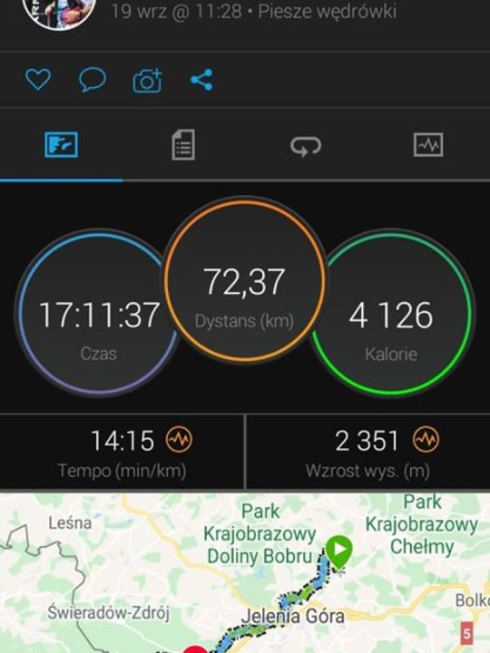 Zajęło mi to 17 h oczywiście zgubienie trasy i nadrobienia ok 5 km. To dla mnie standard. Używałem mapy, nie GPS. Część trasy prowadziła mało uczęszczanymi szlakami, a część w ogóle poza nimi” – wspomina.
