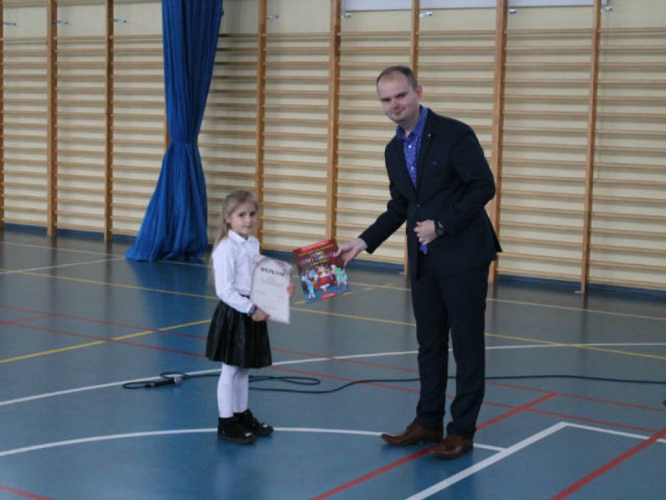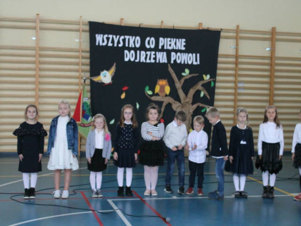 Po tej uroczystości rozwiązany został konkurs na nazwy drzewka, które posadziły dzieci w dniu rozpoczęcia roku szkolnego. O zwycięstwie decydowali nauczyciele, którzy typowali propozycje nadesłane przez dzieci. W klasie 1 a zwyciężył Wojciech Durka, który zaproponował nazwę „Wiązomir”. Zwyciężczynią zaś w klasie 1 b została Nina Urbaniak, której propozycja nazwy drzewka brzmiała – „Zielonek”. Zwycięzcom konkursu serdecznie gratulujemy.