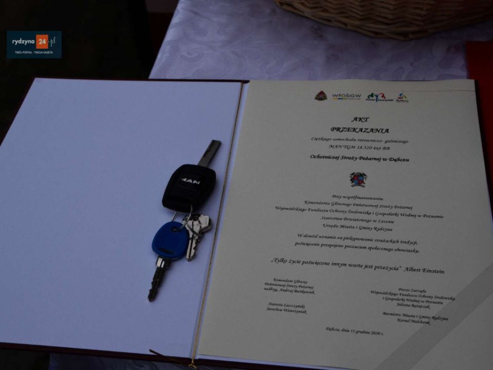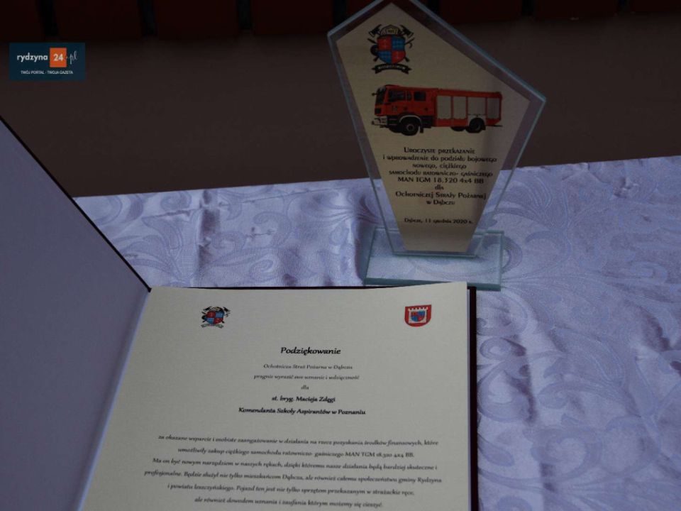 Samochód w Dąbczu jest już od kilkunastu dni Pisaliśmy we wcześniejszym artykule, jak wyglądał przyjazd i powitanie przez strażaków. Oficjalne przekazanie oraz podziękowania dla wszystkich zaangażowanych w zakup pojazdu odbyły się 11.12.2020.