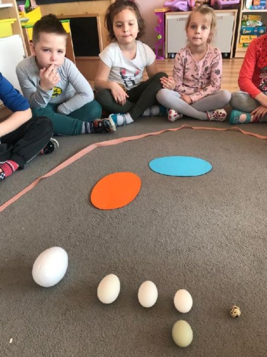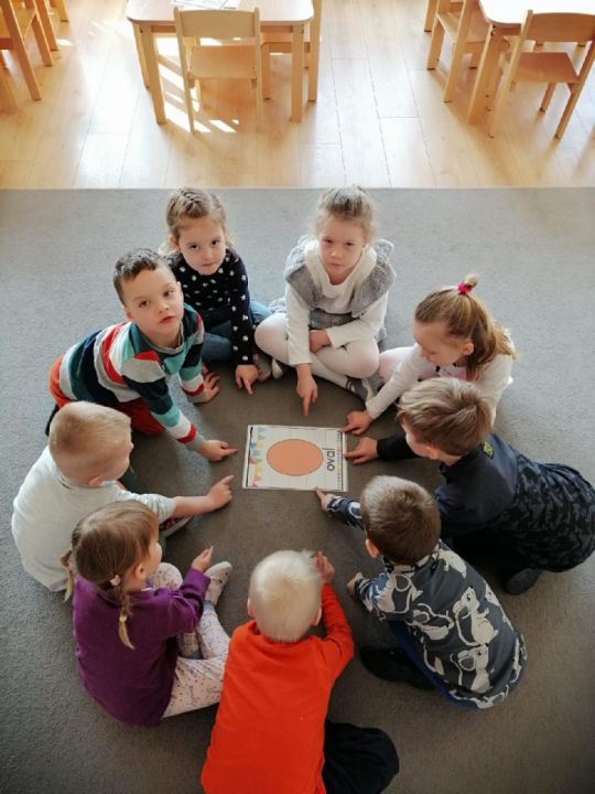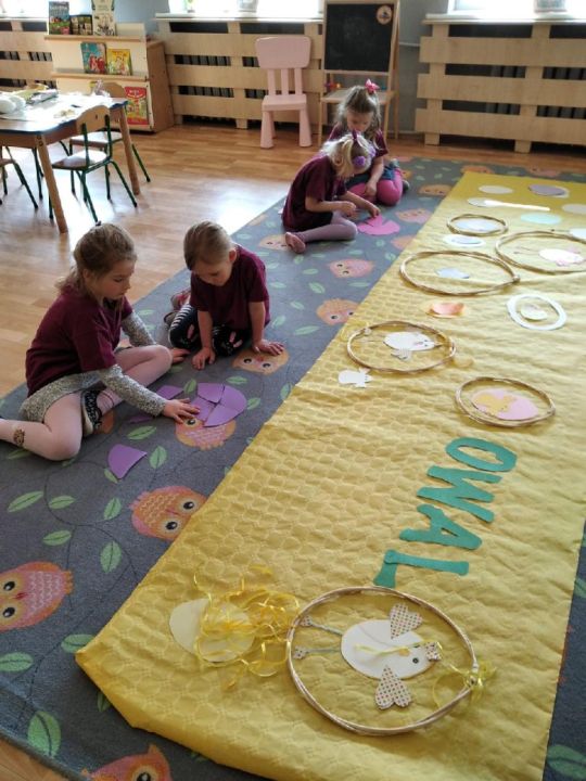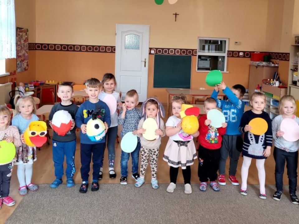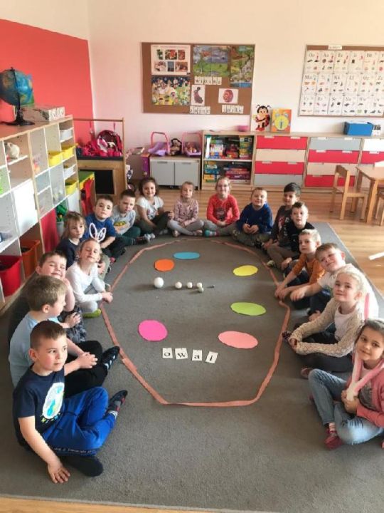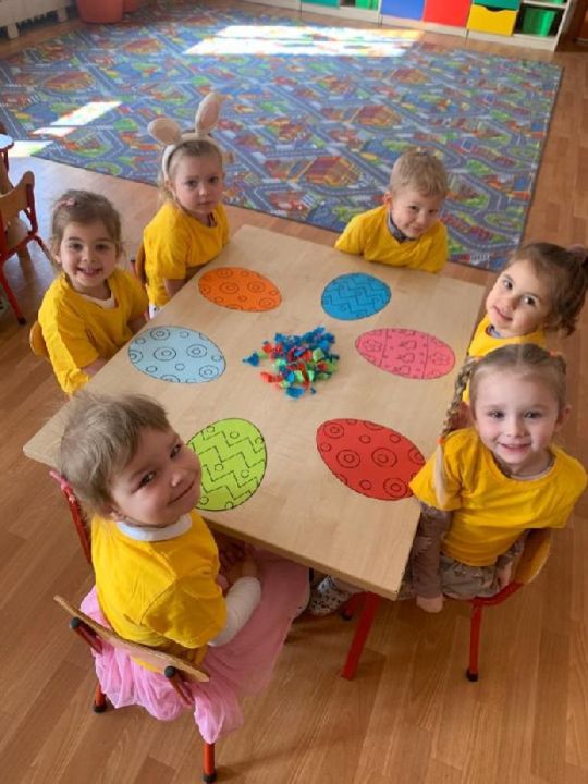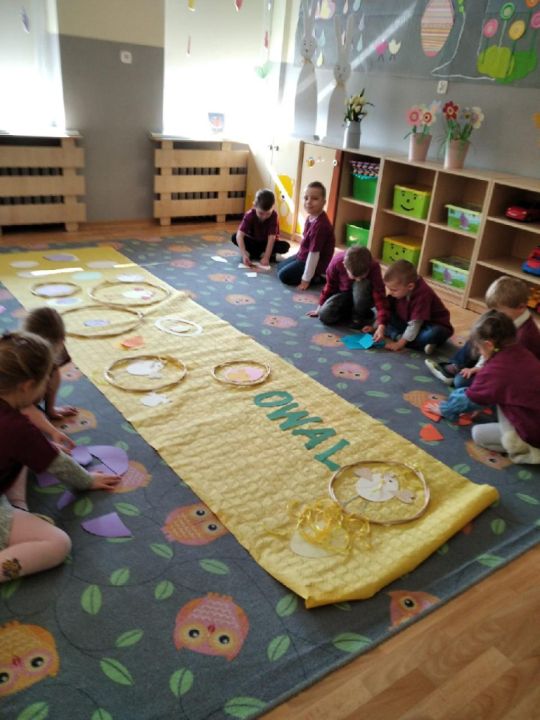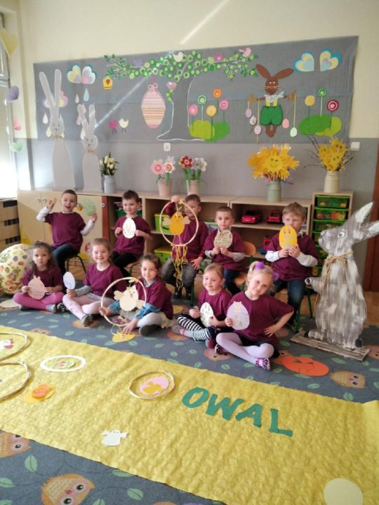 Raz w miesiącu przedszkolaki poznają kolejne figury geometryczne. Tym razem był to owal. Zajęcia dydaktyczne były wyjątkowo radosne i kolorowe, a to za sprawą zbliżających się świąt Wielkanocnych i „zajączka”, który odwiedził naszych podopiecznych w przyspieszonym tempie.