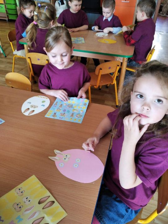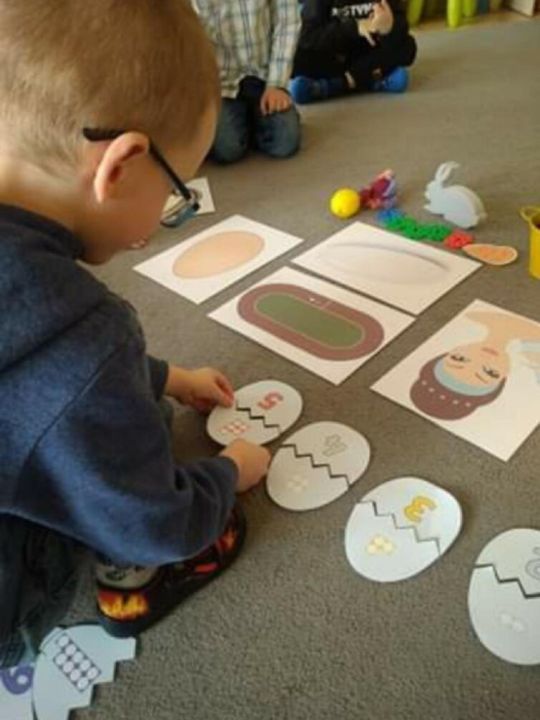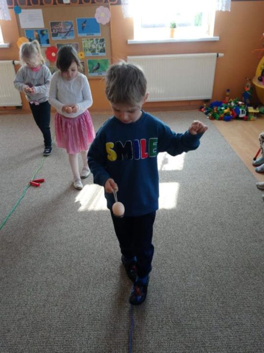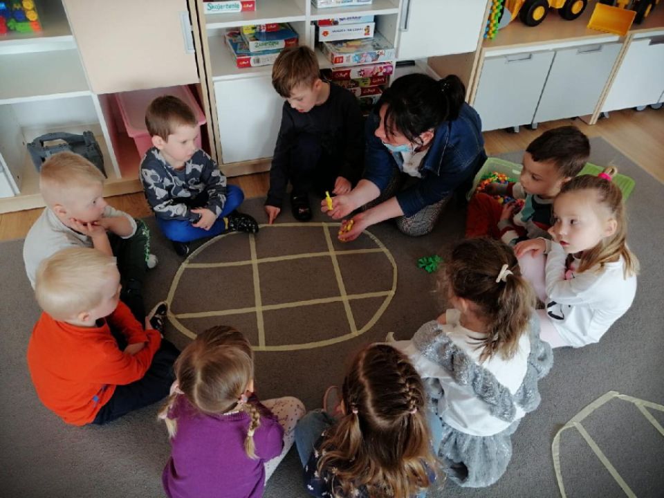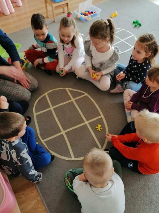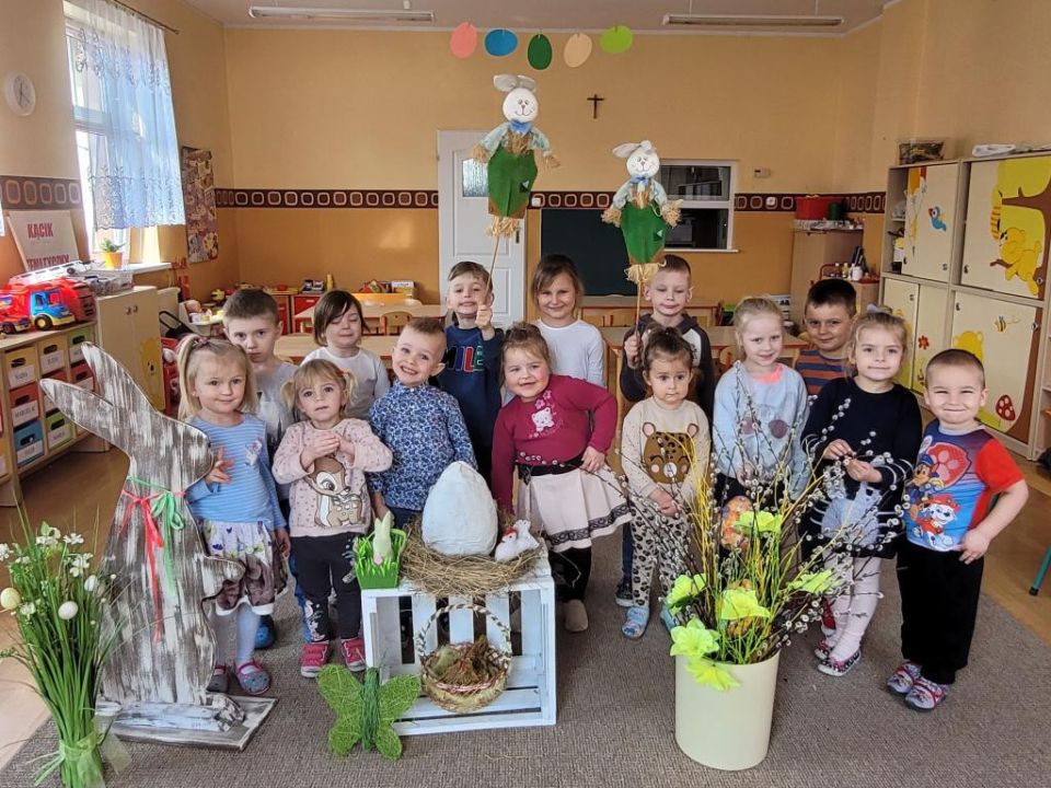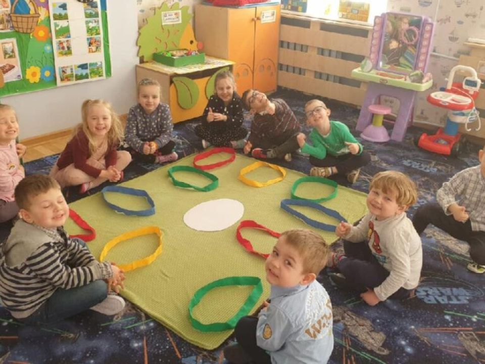 Raz w miesiącu przedszkolaki poznają kolejne figury geometryczne. Tym razem był to owal. Zajęcia dydaktyczne były wyjątkowo radosne i kolorowe, a to za sprawą zbliżających się świąt Wielkanocnych i „zajączka”, który odwiedził naszych podopiecznych w przyspieszonym tempie.
