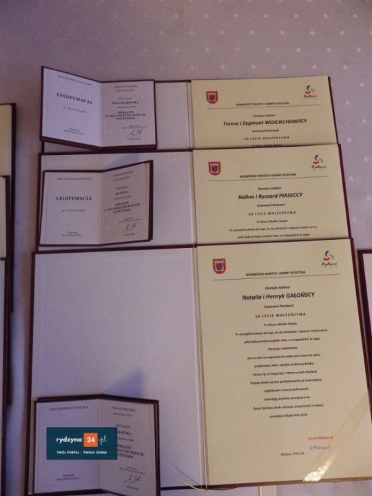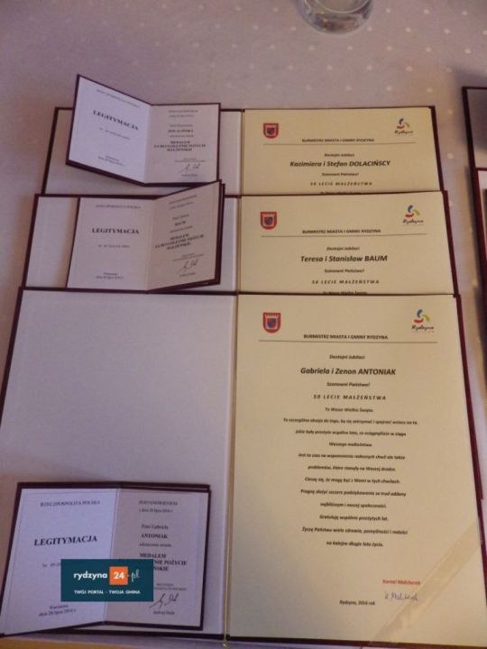 W 2016 roku pięćdziesiątą rocznicę ślubu obchodziło aż siedem par: Janina i Bronisław Szczepaniakowie, Kazimiera i Stefan Dolaciński, Teresa i Stanisław Baum, Gabriela i Zenon Antoniak, Teresa i Zygmunt Wojciechowscy, Halina i Ryszard Piaseccy oraz Natalia i Henryk Gałońscy. Odznaczenia wręczyli Burmistrz Miasta i Gminy, Kornel Malcherek oraz p. kierownik USC w Rydzynie, Jolanta Tomczyk.