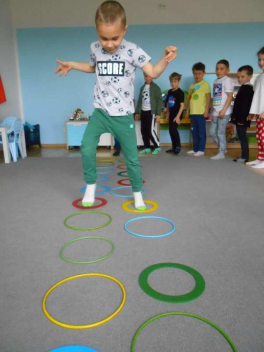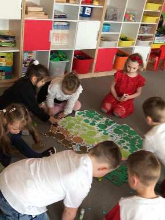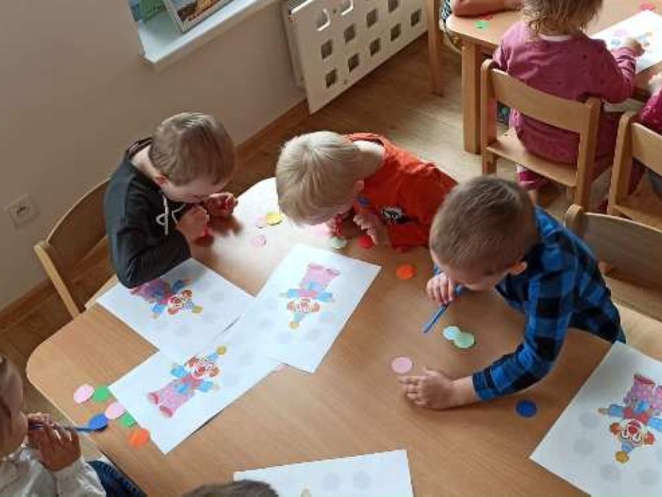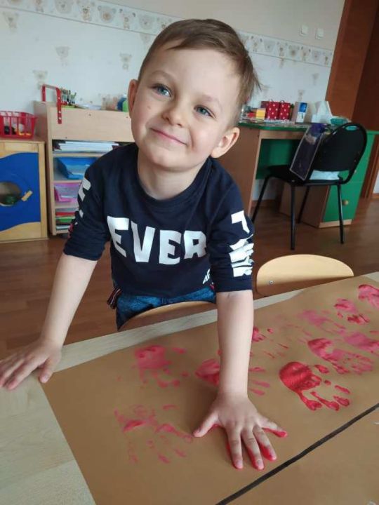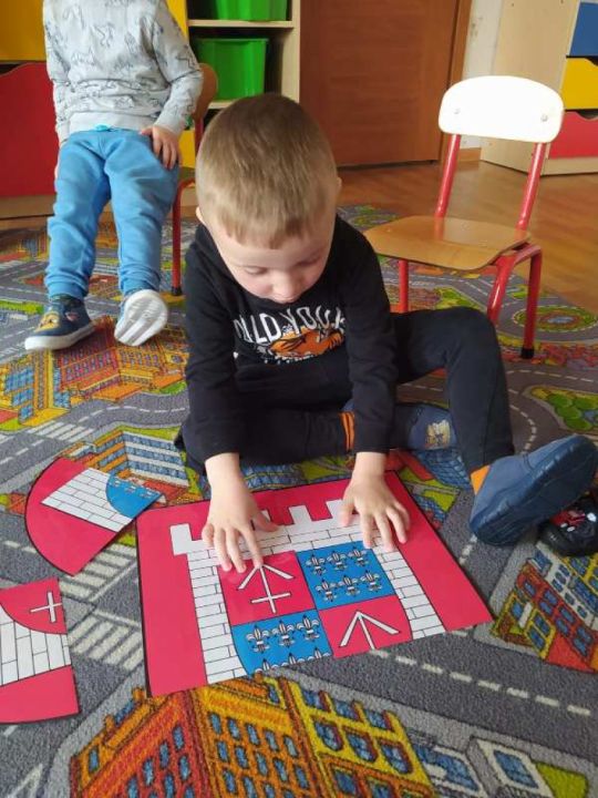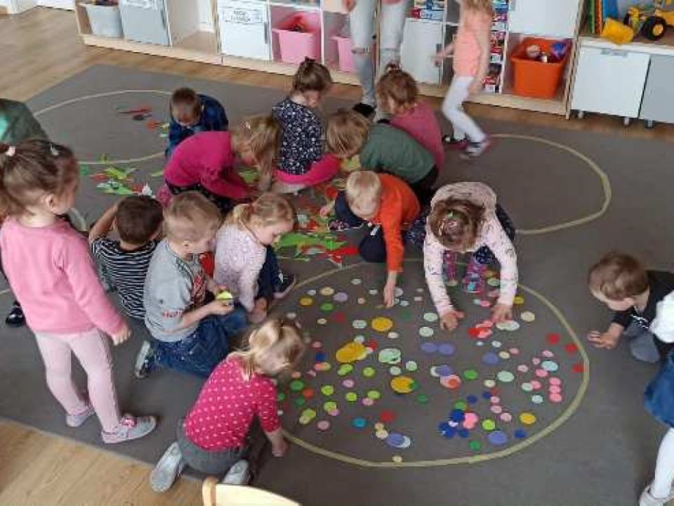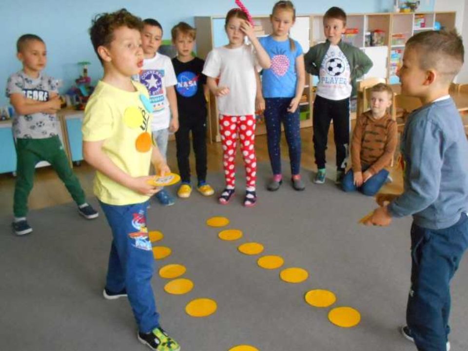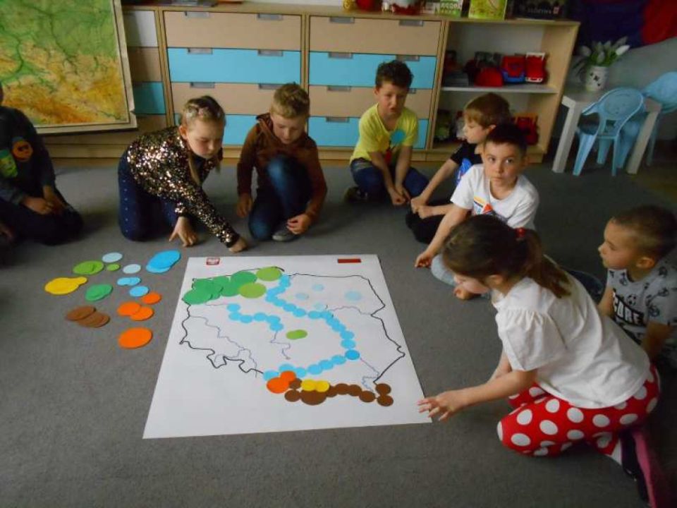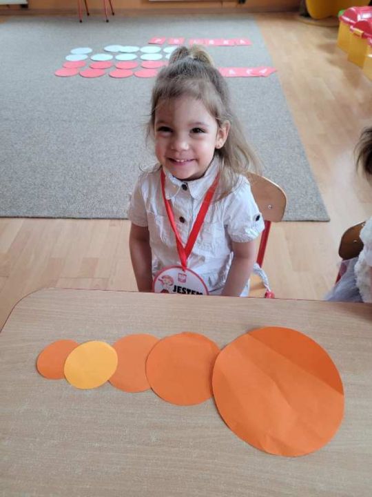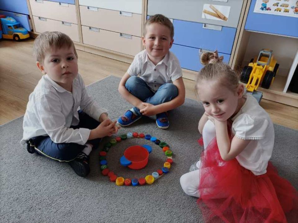 W przedszkolu było bardzo patriotycznie. Dzieci obchodziły dzień z kołem biało- czerwonym. Rozmawiały też o symbolach narodowych. Przedszkolacy wiedzą już o naszej Ojczyźnie bardzo dużo. Znają godło, hymn, kolory flagi polskiej, wiersze o Polsce oraz śpiewają patriotyczne piosenki. Dzieci potrafią wskazać Polskę na mapie oraz wymienić najważniejsze miasta i rzeki. Przy okazji przedszkolacy poznali nową figurę geometryczną- koło i podczas zabaw matematycznych utrwalali jej wygląd.