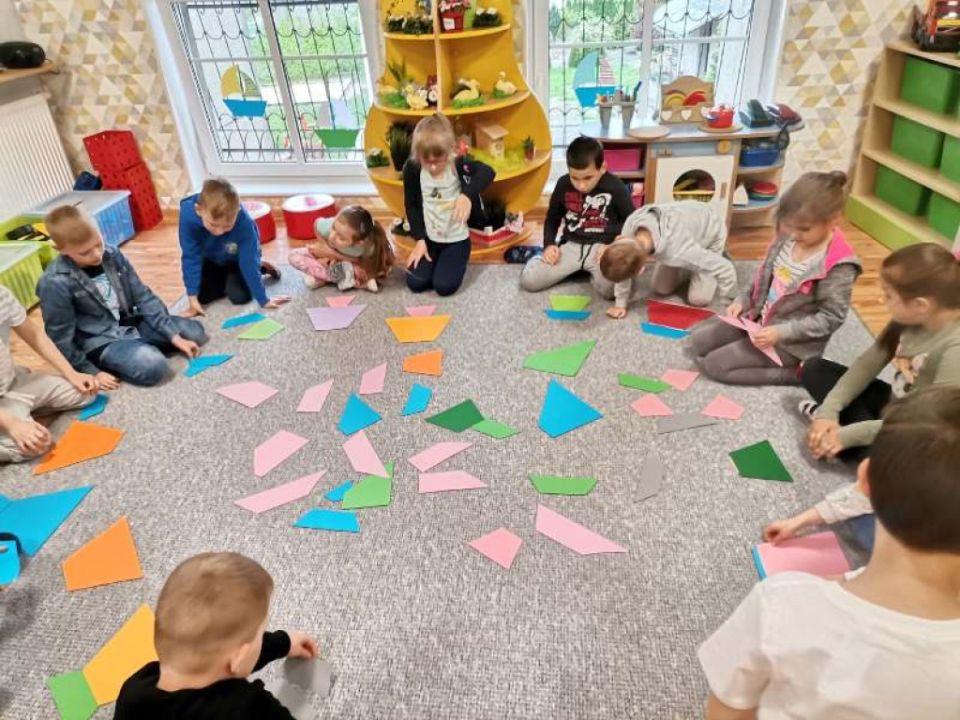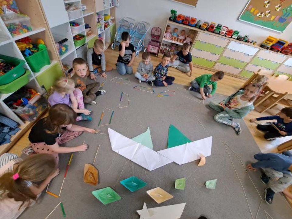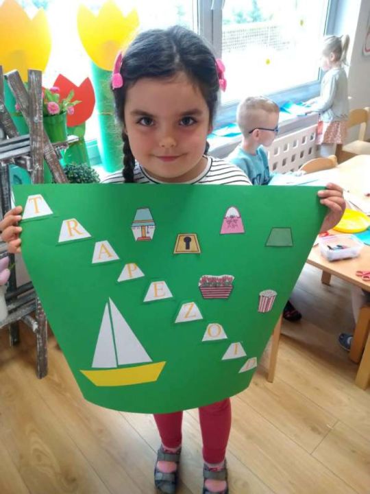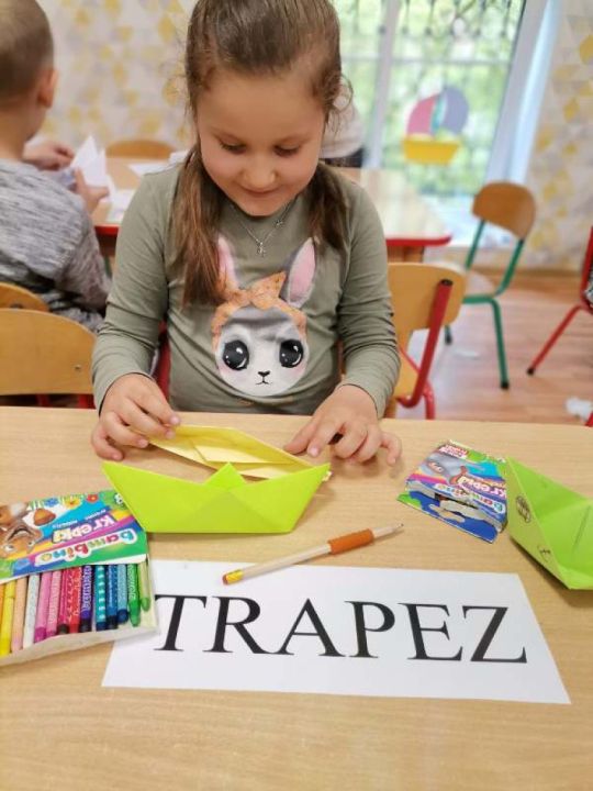 Dla nauczycielek z Przedszkola Kolorowy Wiatraczek w Rydzynie, to żaden problem. Panie dokładając wszelkich starań poprzez różnorodne zajęcia przekazały istotną wiedzę o kolejnej figurze geometrycznej. Dzieci tworzyły kompozycje plastyczne, układały figury z różnych przedmiotów, rysowały kredą oraz pracowały techniką origami. Dużo radości sprawiły dzieciom konkursy pływających łodzi. Po takim dniu każdy przedszkolak wie, jak wygląda TRAPEZ.