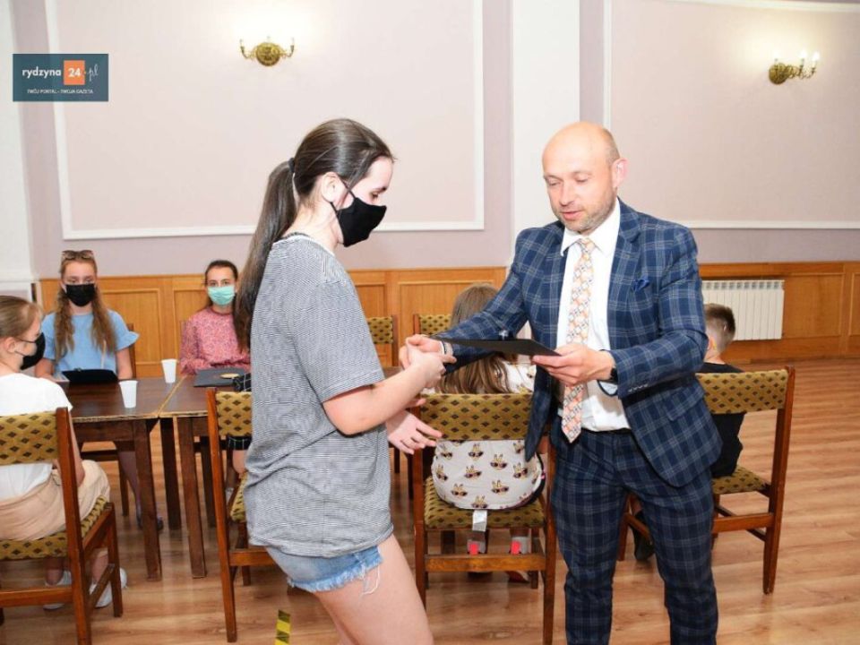 W Rydzyńskim Ośrodku Kultury odbyło się uroczyste wręczenie podziękowań wolontariuszom WOŚP. Burmistrz MiG Rydzyny Kornel Malcherek i szef sztabu Sławomir Zygner zaprosili część zaangażowanych osób. Byli to wolontariusze z Dąbcza.