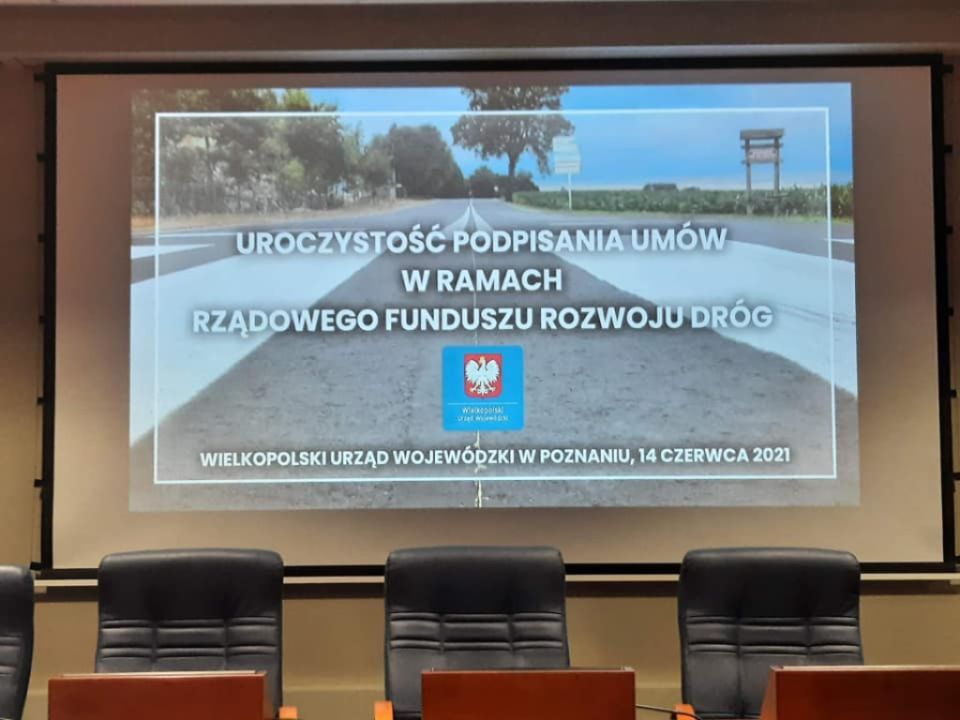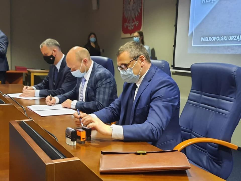Burmistrz Kornel Malcherek oraz Skarbnik Wojciech Antoniak podpisali w Poznaniu umowę z Wojewodą Wielkopolskim, na przebudowę dróg gminnych ul. Łopuszańskiego i ul. Czarnieckiego w Rydzynie.