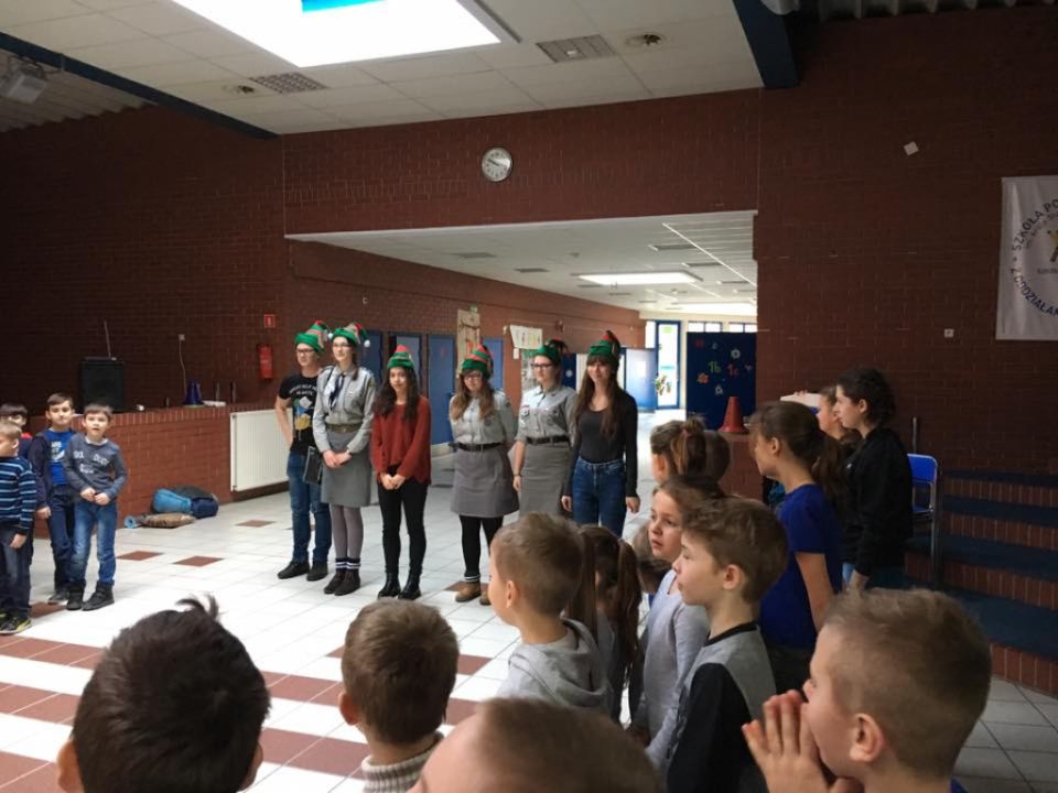 Kontynuując coroczną tradycję zuchy z Gromady Zuchowej „Pracowite Mrówki” z Dąbcza wrazz drużynową Sandrą  Ratajczak uczestniczyły w Rajdzie Mikołajkowym pt. „W warsztacie Świętego Mikołaja”, który odbył się w dniach 2-3 grudnia 2016r. Szkole Podstawowej nr 13 w Lesznie. Razem z nami bawiły się jeszcze inne gromady, razem było nas 116. Pierwszego dnia odbyło się świeczowisko oraz prezentacja gromad. Zadaniem przed rajdowym było napisanie wiersza lub opowiadania związanego z zimą lub Świętami. Opowiadania dla gromady „Pracowite Mrówki” napisała zuchna Nadia Kubicka. Następnego dnia czekało na nas mnóstwo pracy. Po zjedzeniu śniadania i posprzątaniu sal udaliśmy się na rajd po lesie. Mieliśmy do wykonania 6 zadania, które przedstawiły nam elfy, aby pomoc Świętemu Mikołajkowi w przygotowaniach do świąt, m.in. ubieranie choinki, sprawdzenie wiedzy o Mikołaju, układanie puzzli, malowanie jego portretu, poskładania reniferów, robienie łańcucha na choinkę. Po obiedzie natomiast byliśmy w pracowni Świętego Mikołaja i pomagaliśmy mu ustroić torebki na prezenty dla dzieci. Na koniec odbyło się podsumowanie rajdu. Jakież było nasze zaskoczenie gdy okazało się, że razem z dwoma innymi gromadami zajęliśmy 1miejsce. Z uśmiechem na twarzy wszyscy pożegnaliśmy się i wróciliśmy do domu, by się wyspać.