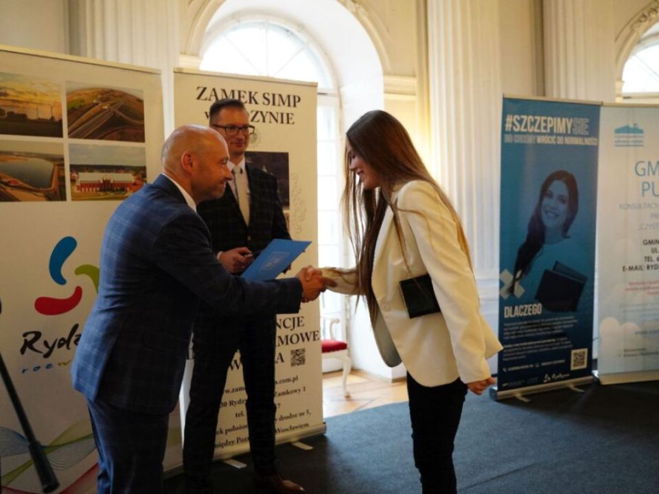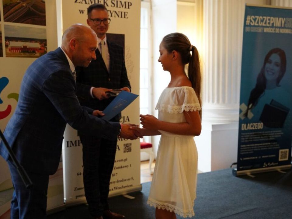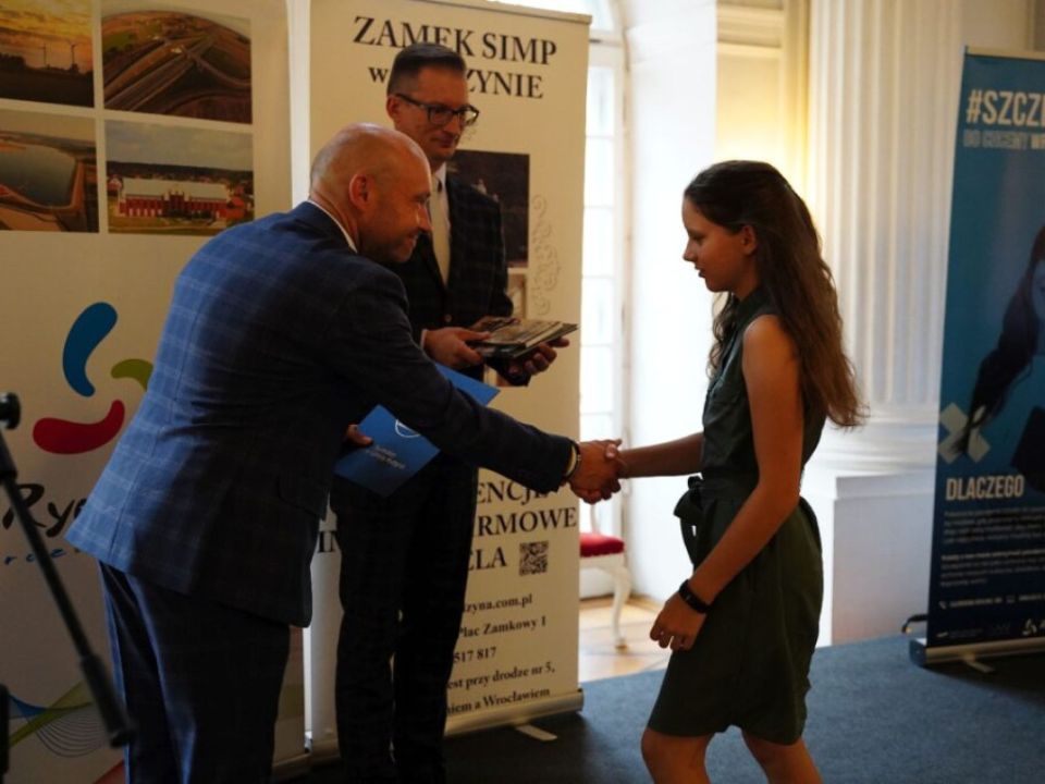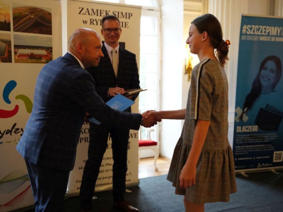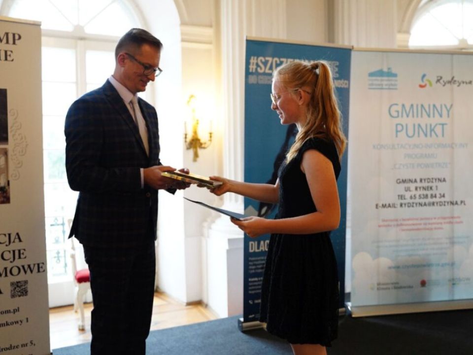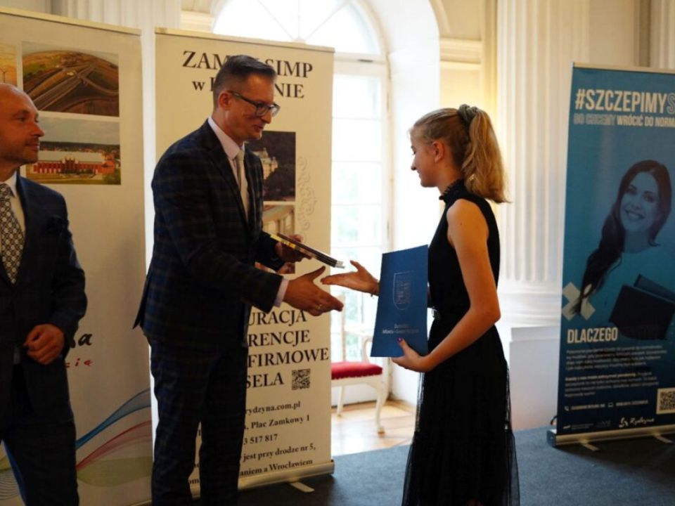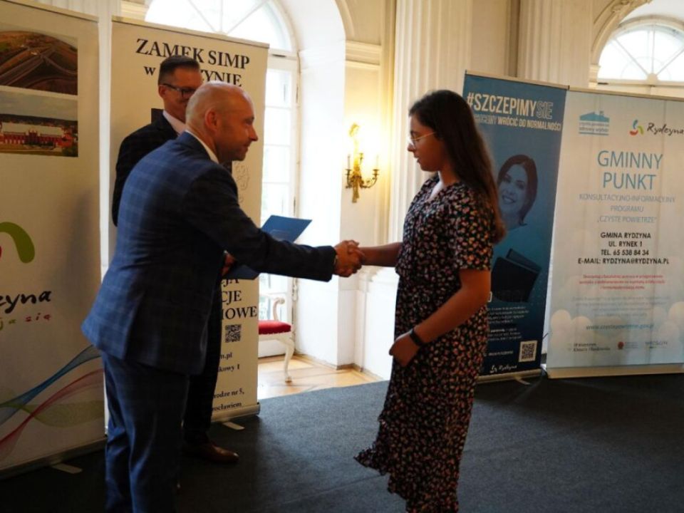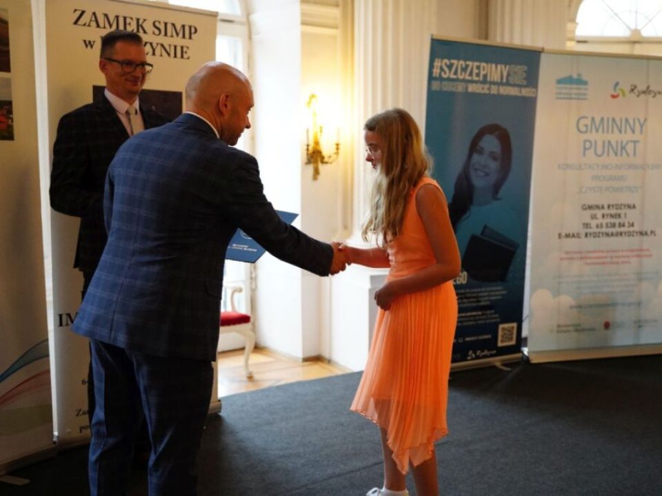 Uczniowie spotkali się na gali w Zamku SIMP w Rydzynie. Burmistrz pogratulował młodzieży oraz ich rodzicom i nauczycielom. Dzieci otrzymały dyplomy oraz upominki, a także jednorazowe stypendium w wysokości: 300 złotych dla uczniów ze średnią 5,30< w klasach IV-VI oraz ze średnią 5,10 w klasach VII-VIII. Nagrodzeni zostali również uczniowie, którzy uzyskali najwyższe wyniki egzaminu ósmoklasisty.