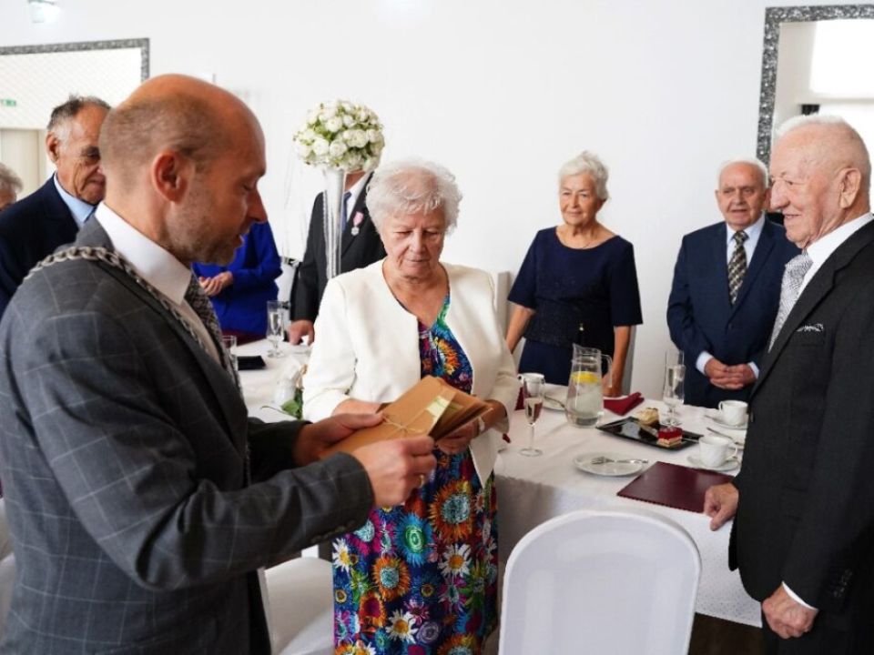 22.10. w Domu Wesel „OAZA” spotkały się pary, mogące poszczycić się długoletnim stażem małżeńskim. Burmistrz Miasta i Gminy Rydzyna uroczyście wręczył w imieniu Prezydenta RP „Medale Za Długoletnie Pożycie Małżeńskie” dziesięciu parom, które w tym roku obchodzą 50. rocznicę ślubu. goście również otrzymali gratulacje od p. Jolanty Tomczyk kierownik USC. Gratulacje otrzymało również pary z 55 letnim oraz pary z 60 letnim stażem małżeńskim.